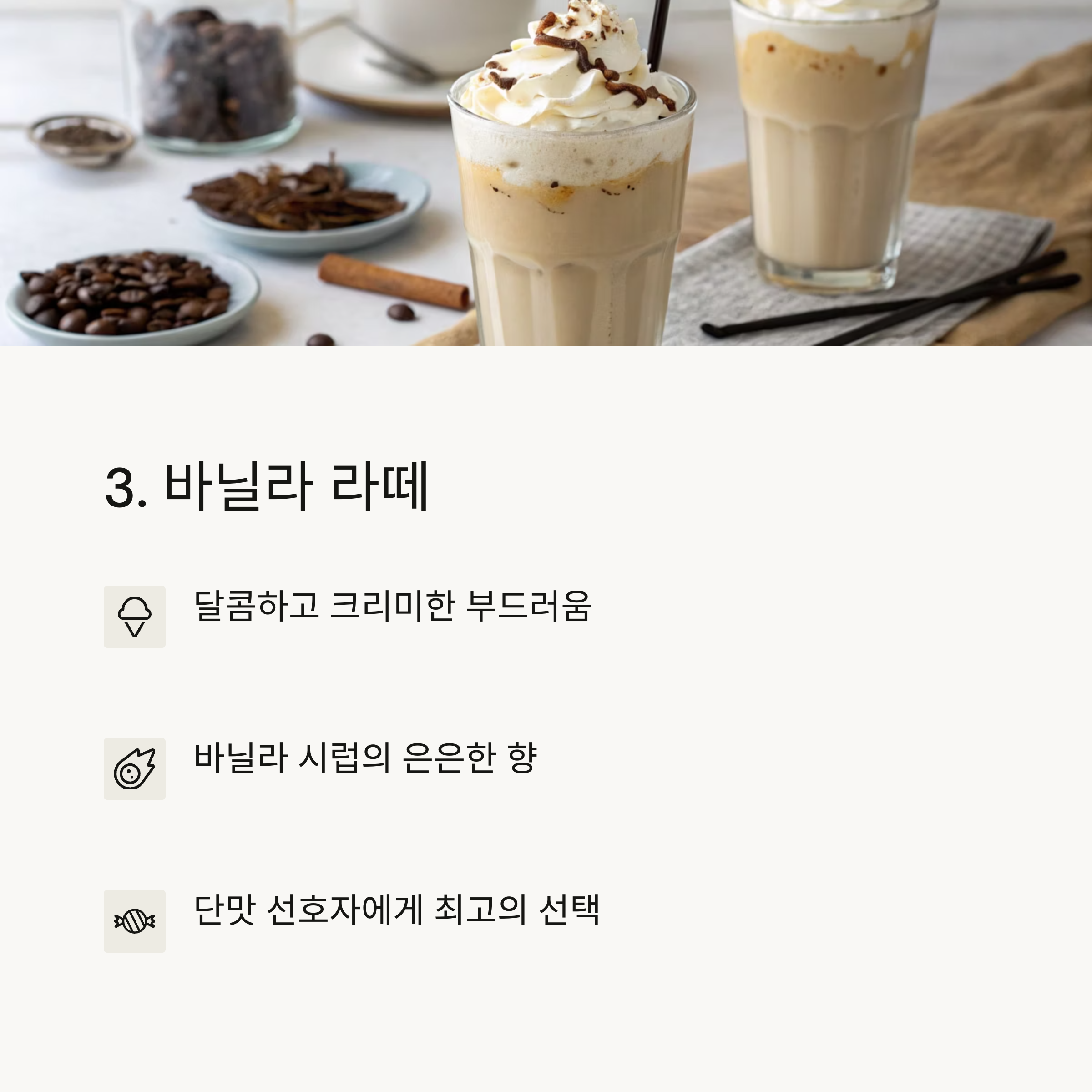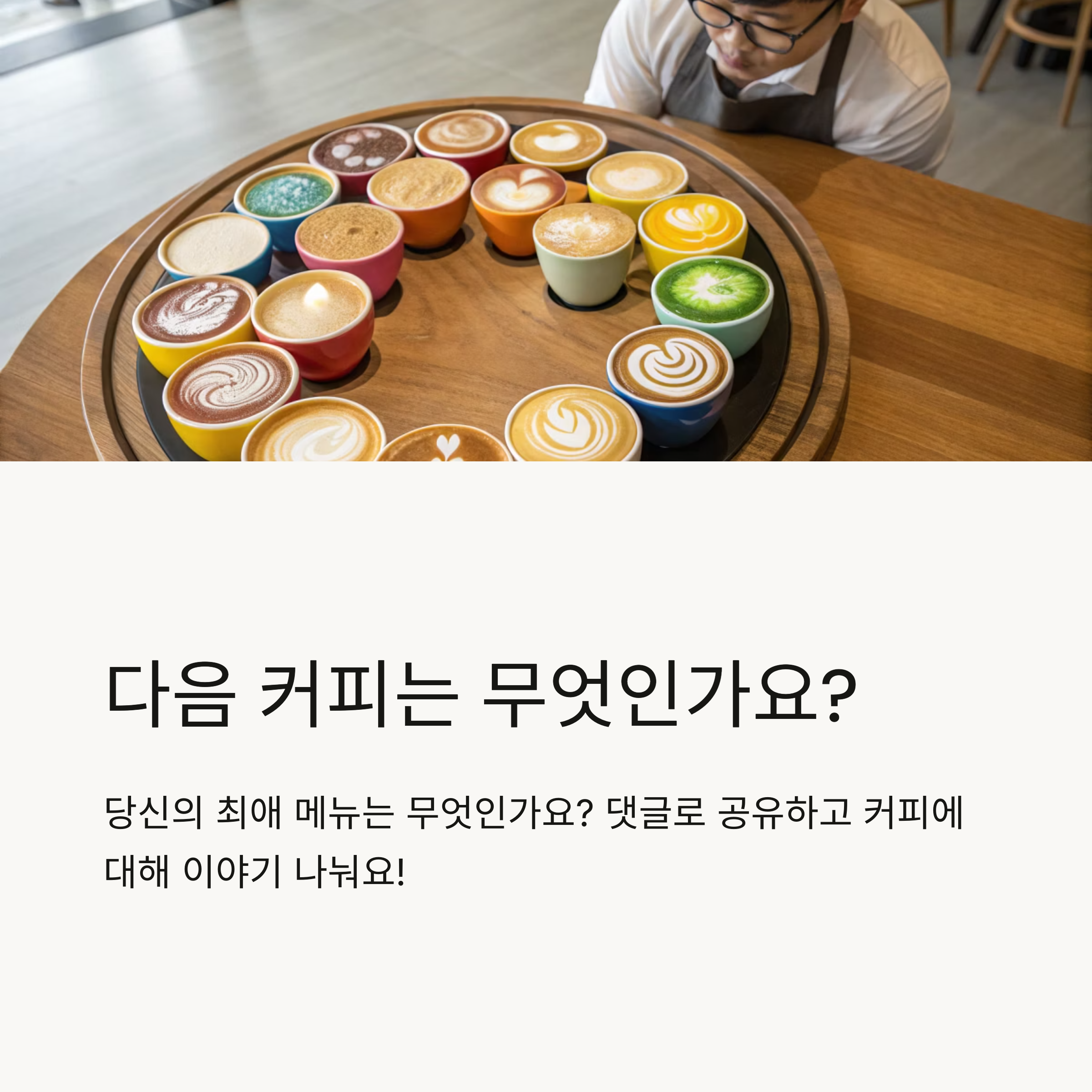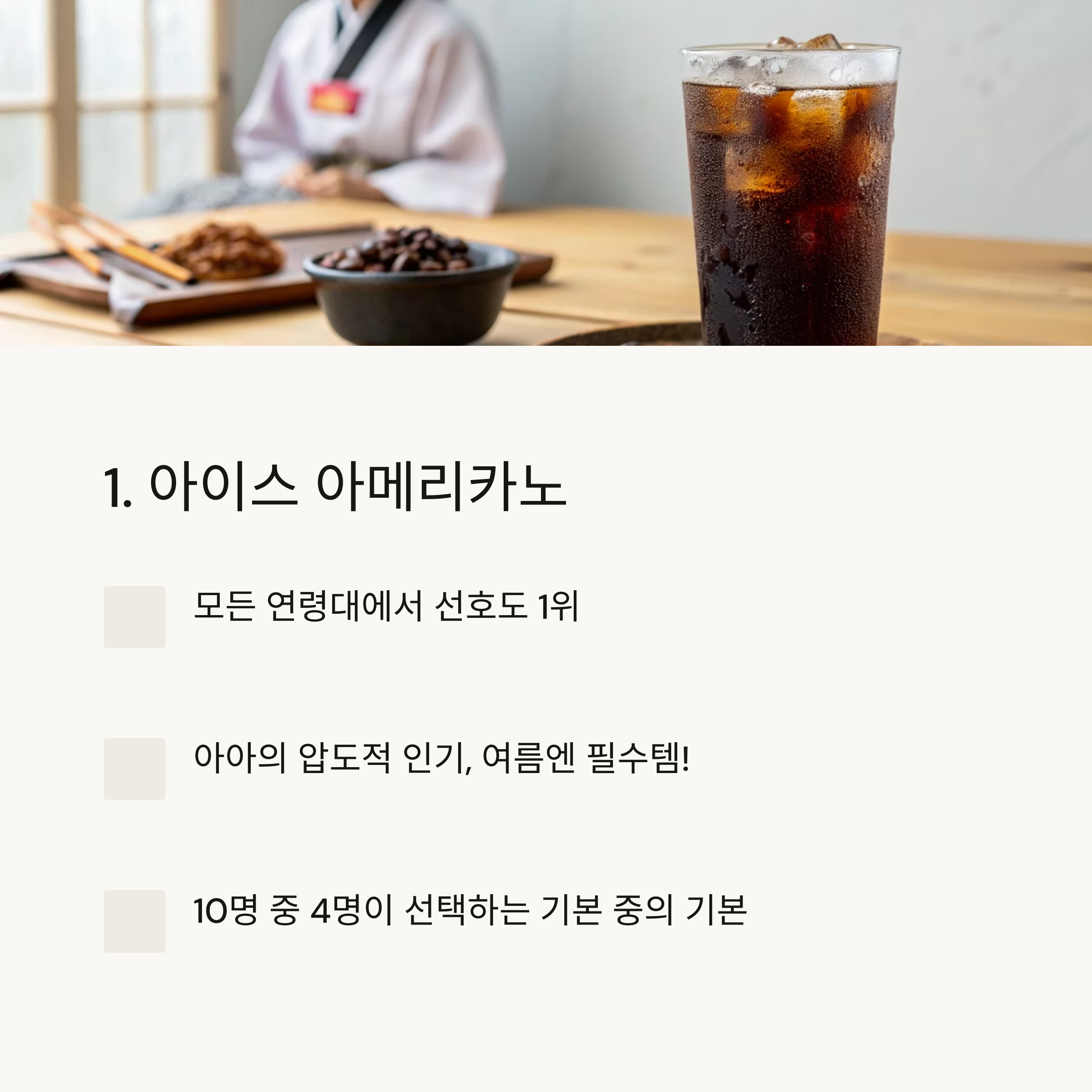 안녕하세요 여러분! 혹시 이런 고민 있으셨나요? 매장에 갔는데 메뉴가 너무 많아서 뭘 고를지 모르겠는 거예요. 바쁜 아침, 달콤한 오후, 친구와 수다 떠는 저녁까지 상황에 따라 어울리는 커피와 디저트가 다르죠. 그래서 오늘은 가장 많은 사람들이 선택한 실제 매출 기준 상위 10개 인기 메뉴를 알려드릴게요. 다음 번 방문엔 고민 없이 딱! 고르실 수 있도록요.