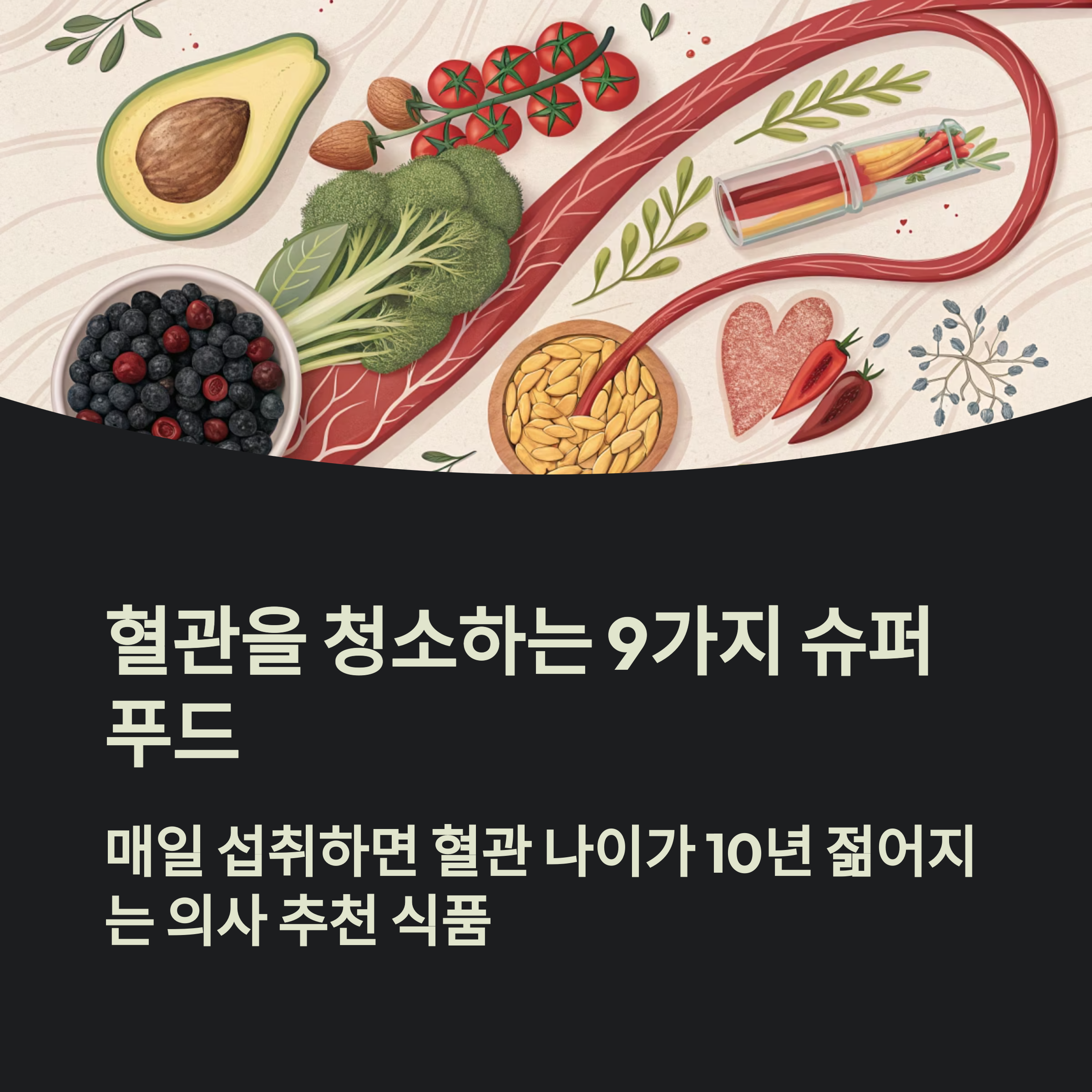 이 글에서는 혈관 기능을 회복시키는 9가지 음식의 원리, 섭취법, 주의할 점까지 가장 구체적으로 정리합니다.