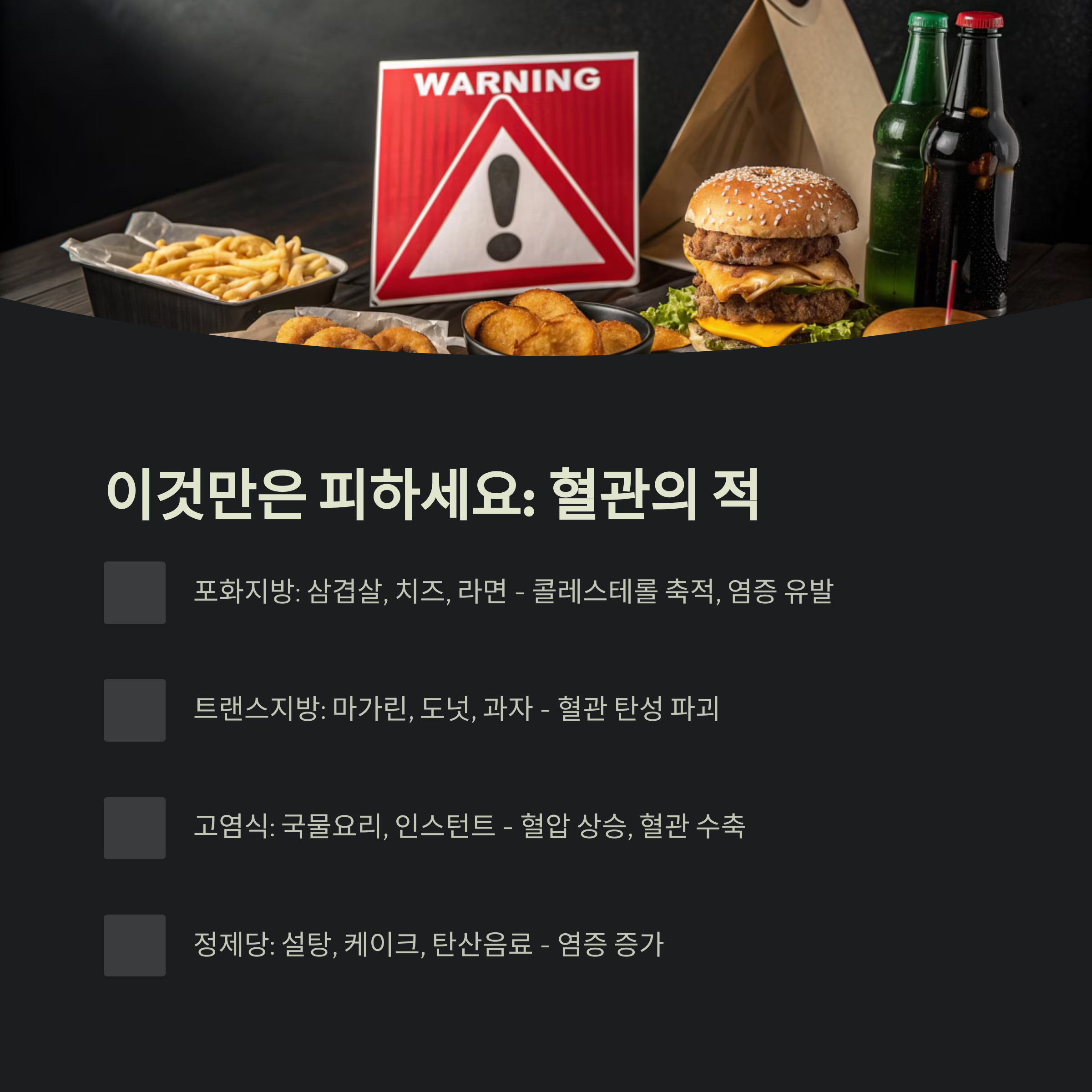 - 피해야 할 혈관 적(敵) 음식