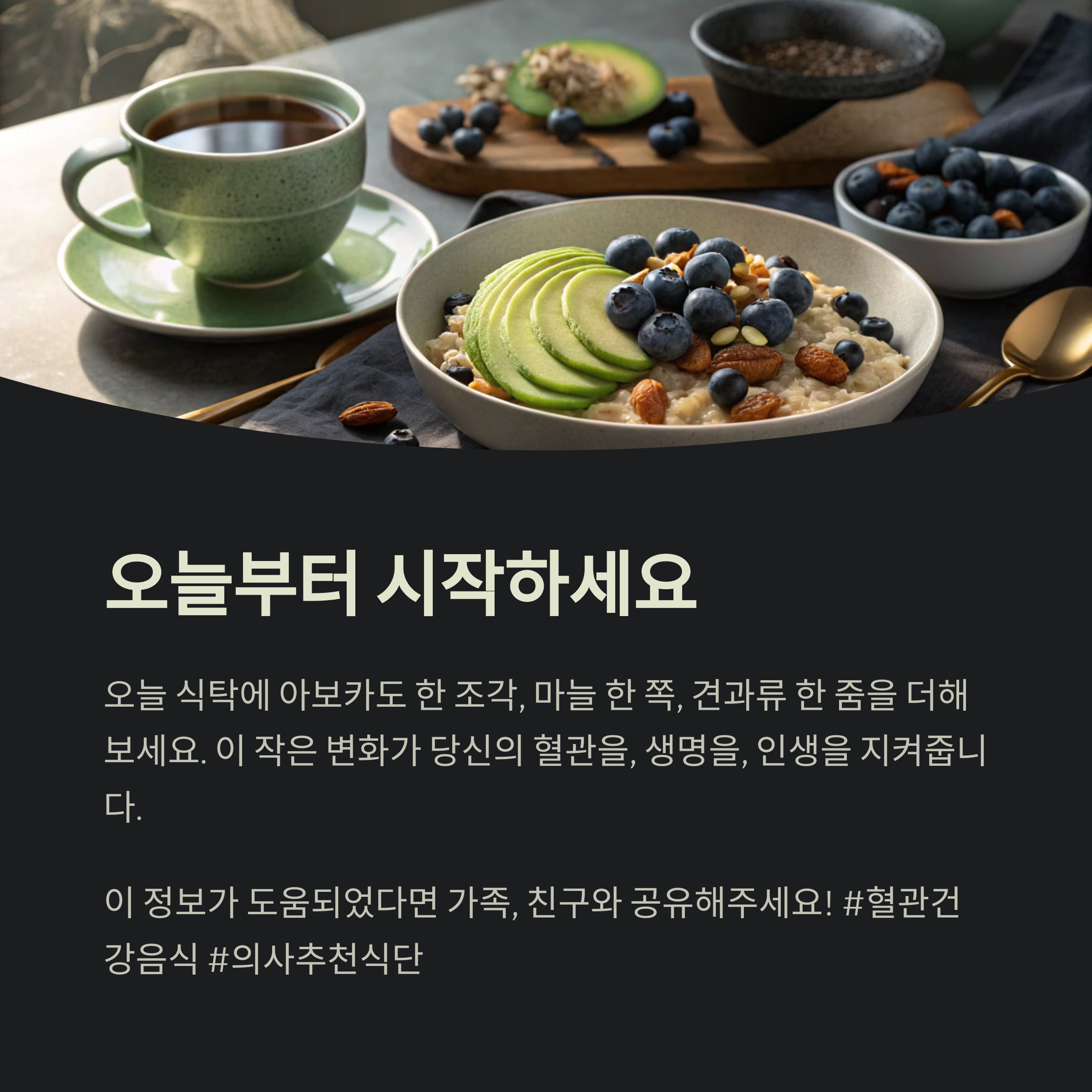 특히 혈관은 증상이 느껴질 땐 이미 늦은 경우가 많기 때문에, 건강한 식습관은 선택이 아닌 예방의 무기입니다.