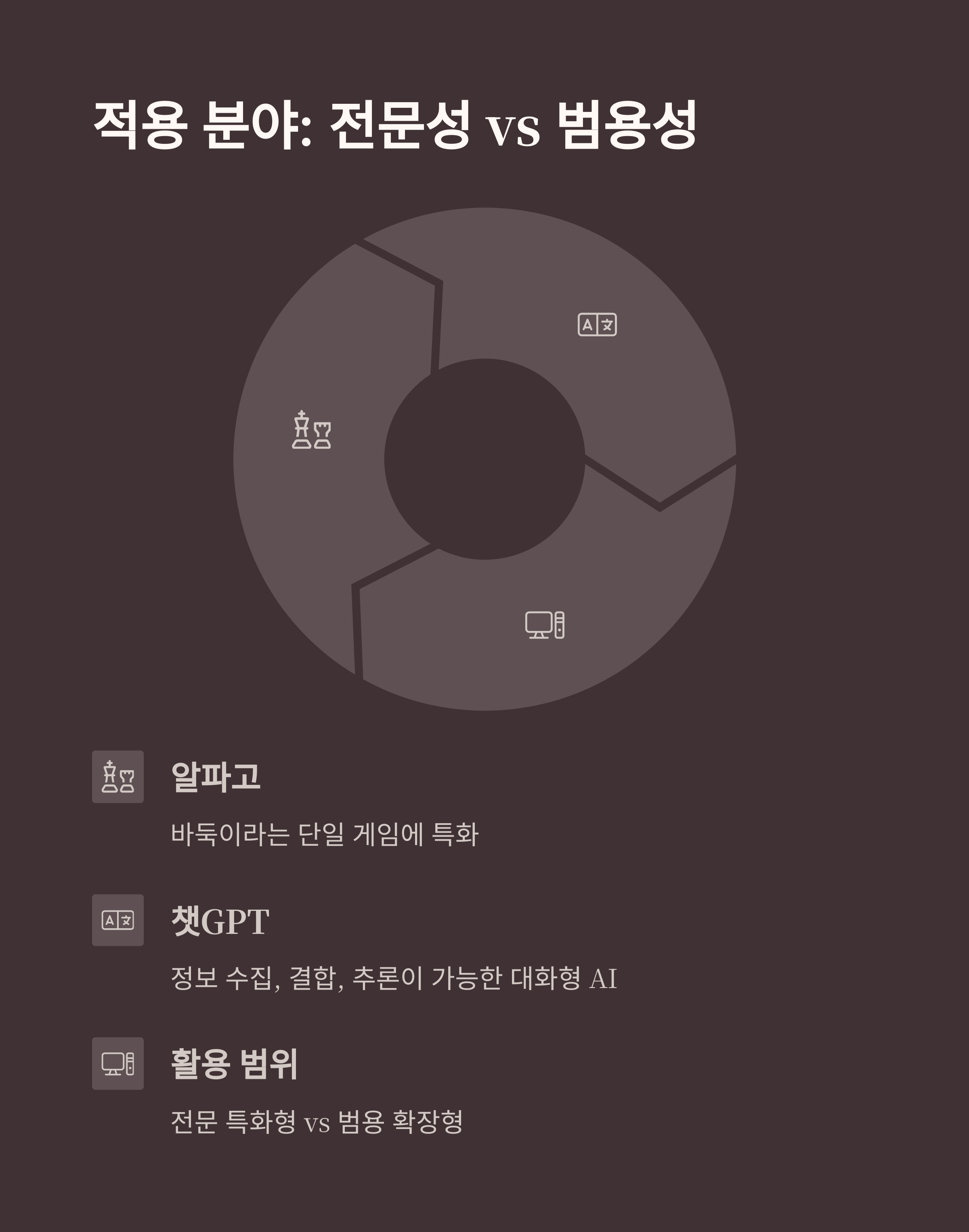 - 적용 분야와 한계: 전문 특화형 vs 범용 확장형