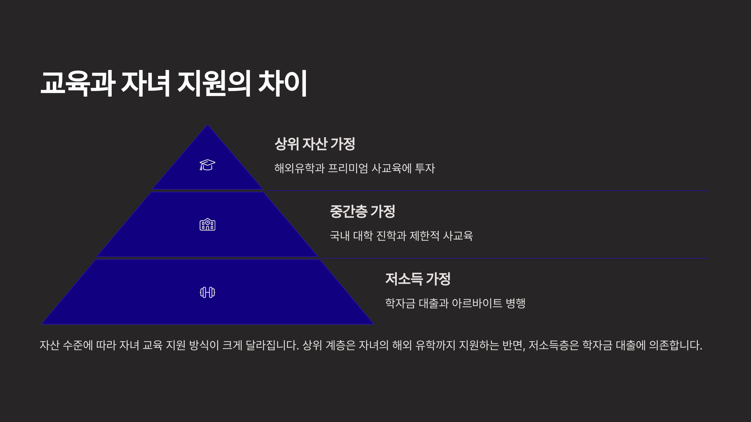 | 자산 격차 | 경제 수준에 따라 50대 삶의 모습은 달라집니다. |