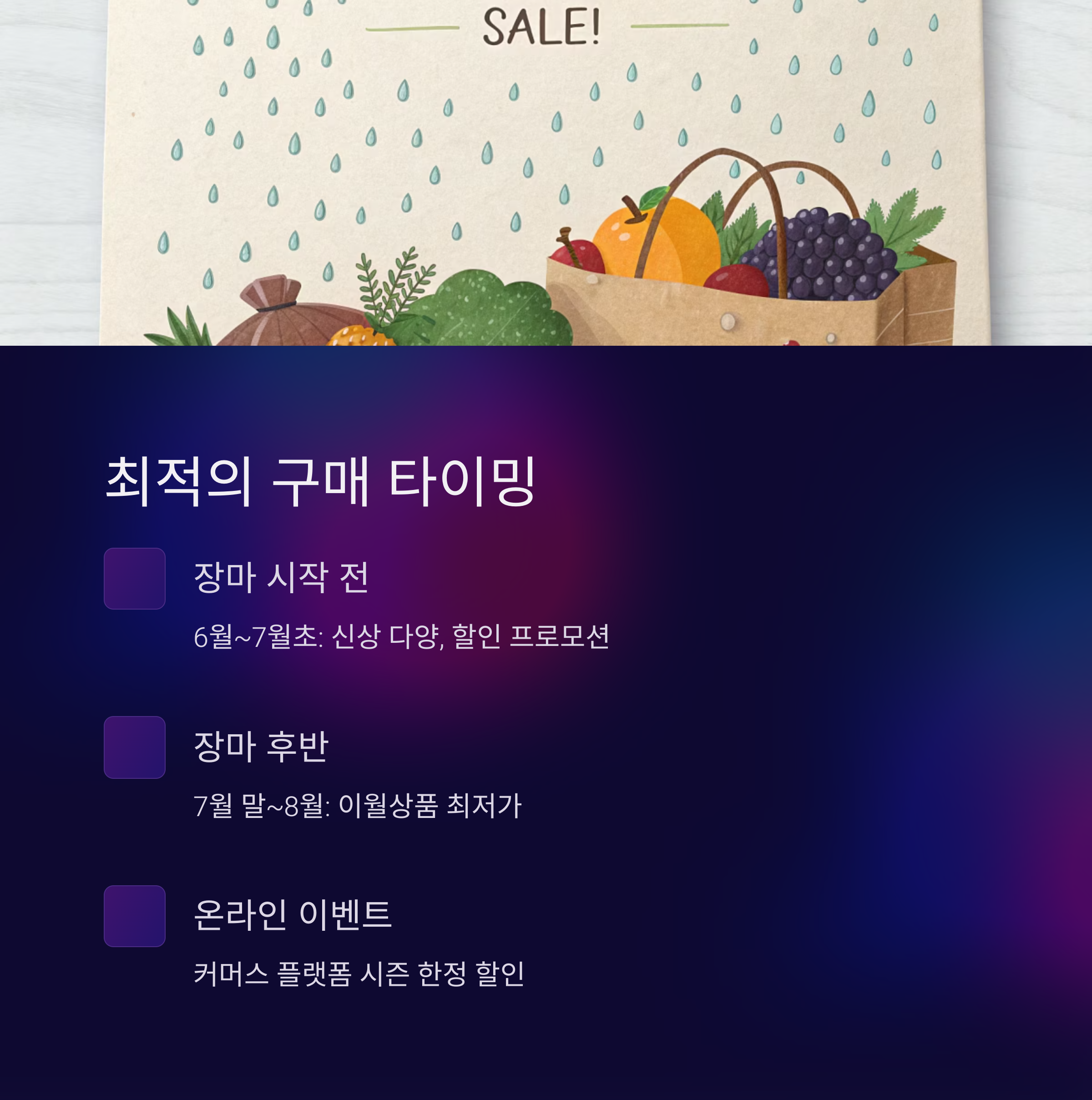 - 시즌별 구매 타이밍과 할인 정보