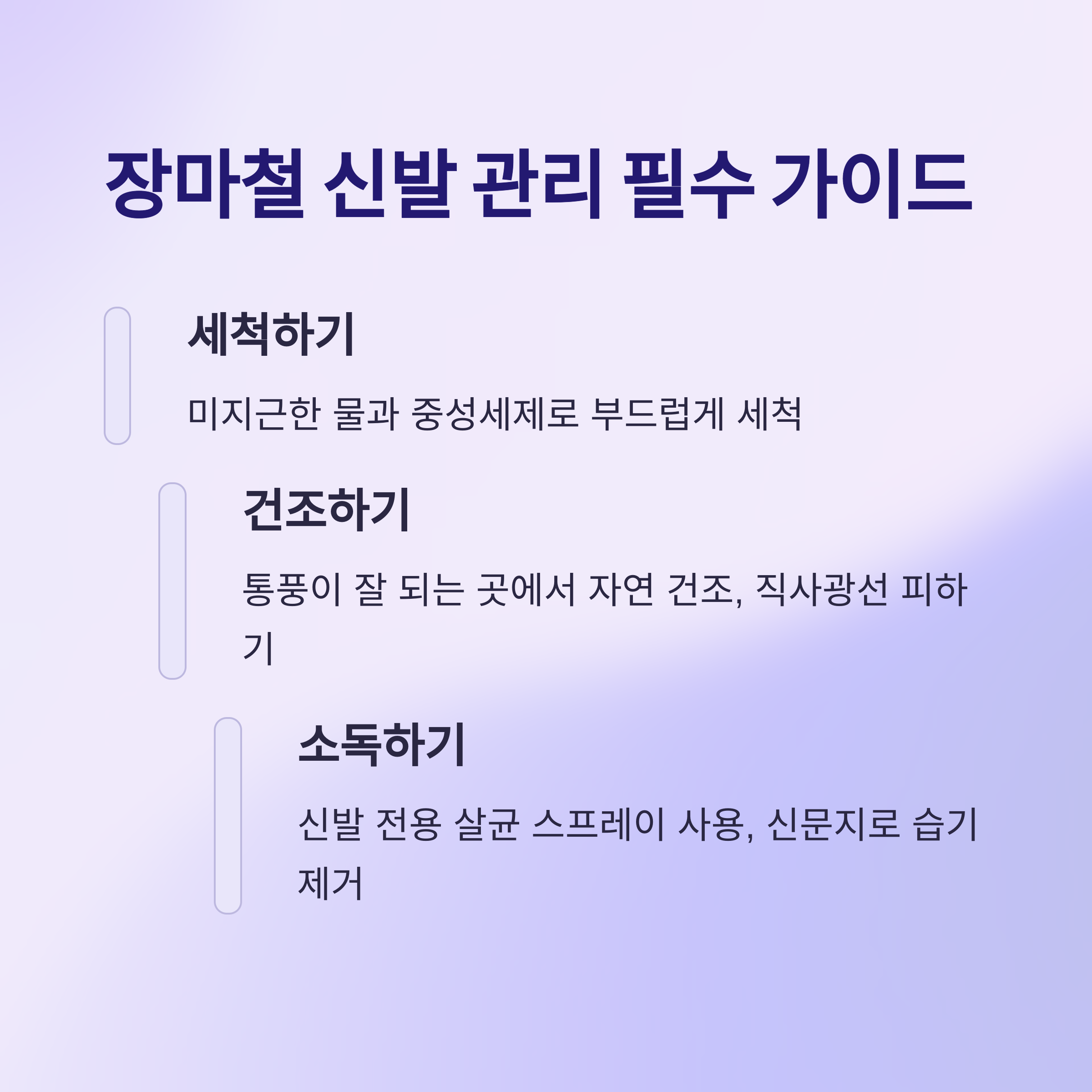 비 오는 날, 축축한 신발을 그대로 신으셨던 적 있으신가요? 작은 부주의 하나가 여러분의 피부에 큰 상처를 남길 수 있습니다. 장마철 신발 관리는 단순한 습기 제거를 넘어 건강을 지키는 중요한 습관이에요.
