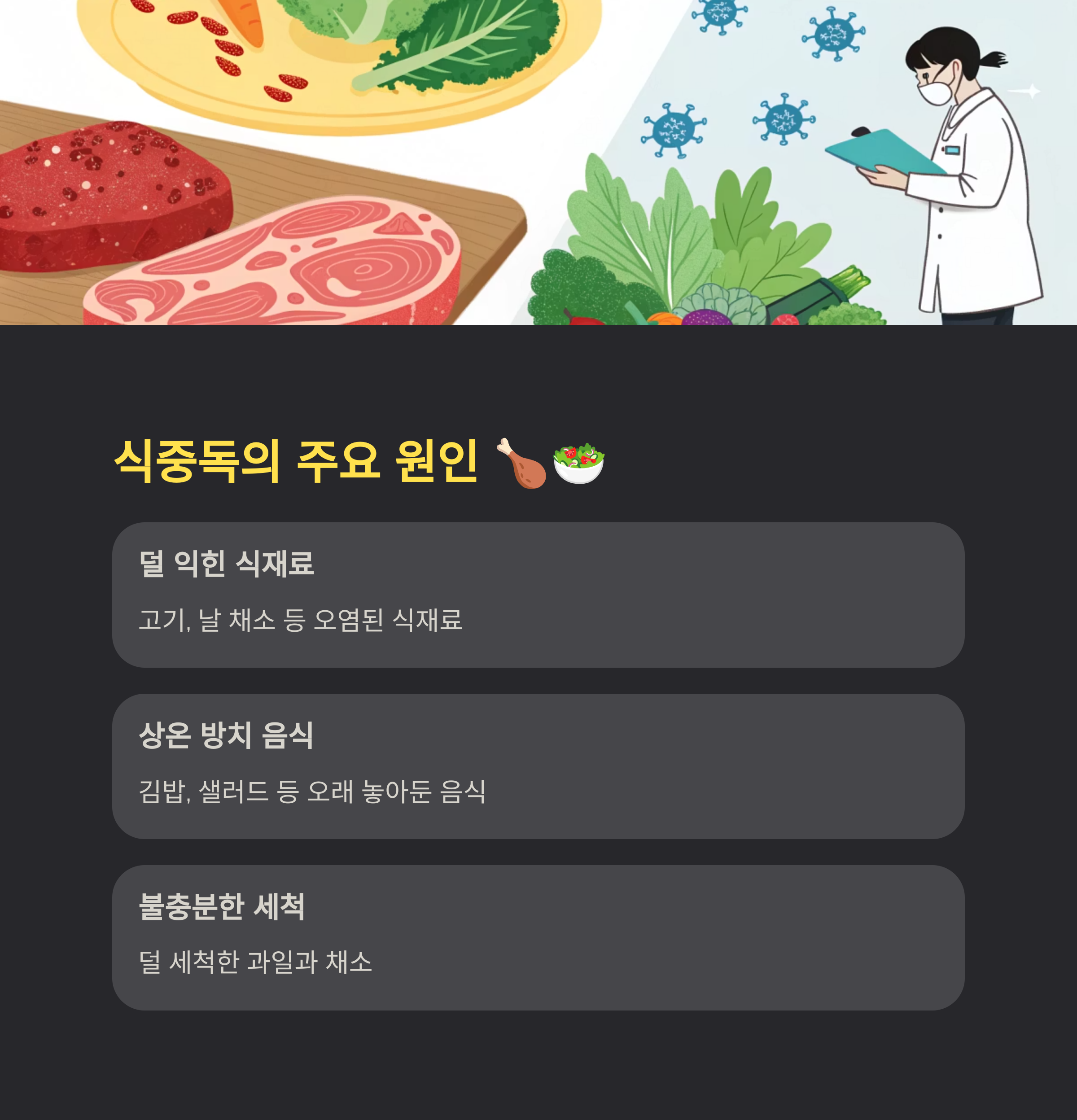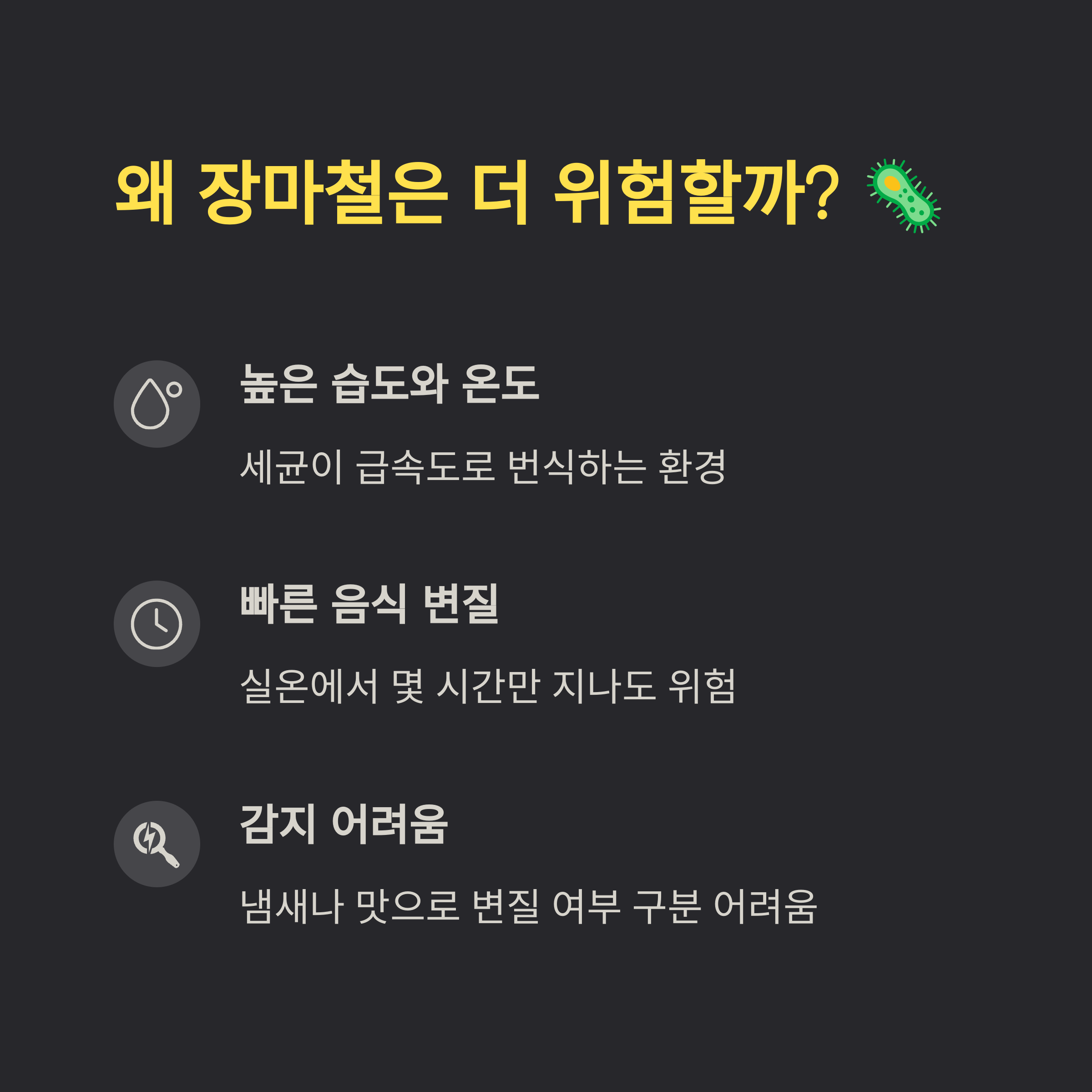 우리 건강에 직결되는 식중독 위험까지도 함께 따라온다는 사실, 잊지 마세요.