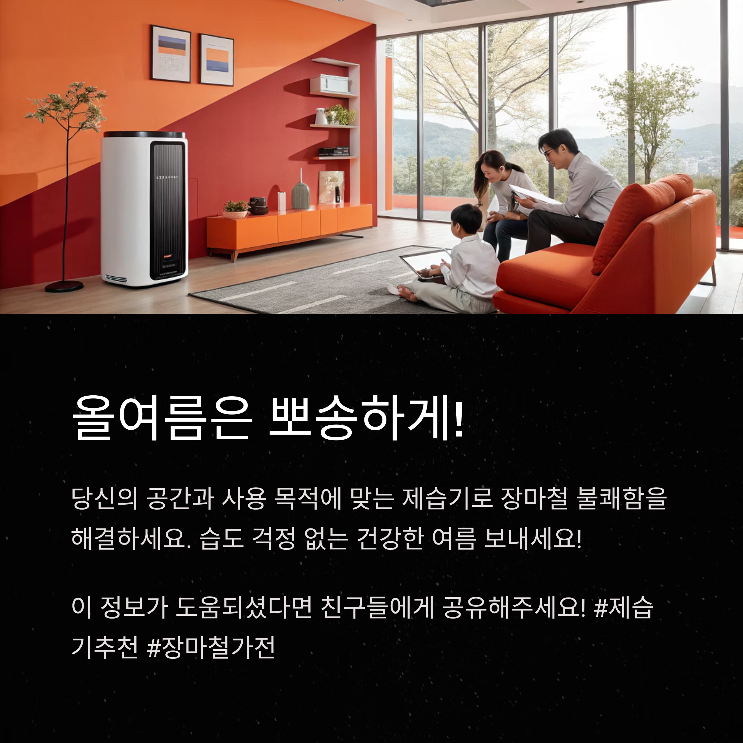 당신의 공간과 사용 목적에 딱 맞는 제습기로 올여름은 뽀송하고 건강하게 보내시길 바랍니다.