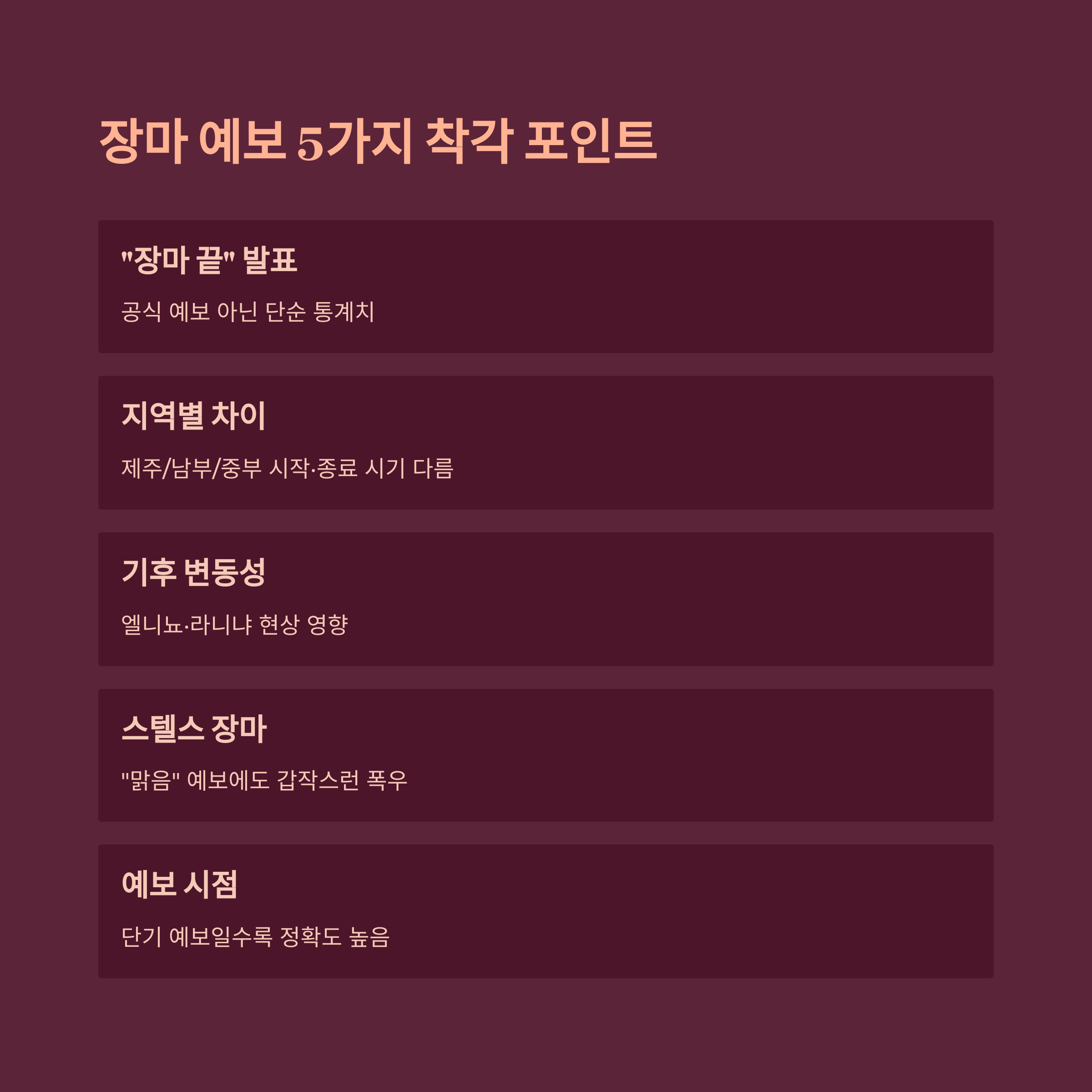 - 장마는 고정된 날씨가 아니라 ‘전선의 위치와 이동성’에 따라 시시각각 변동