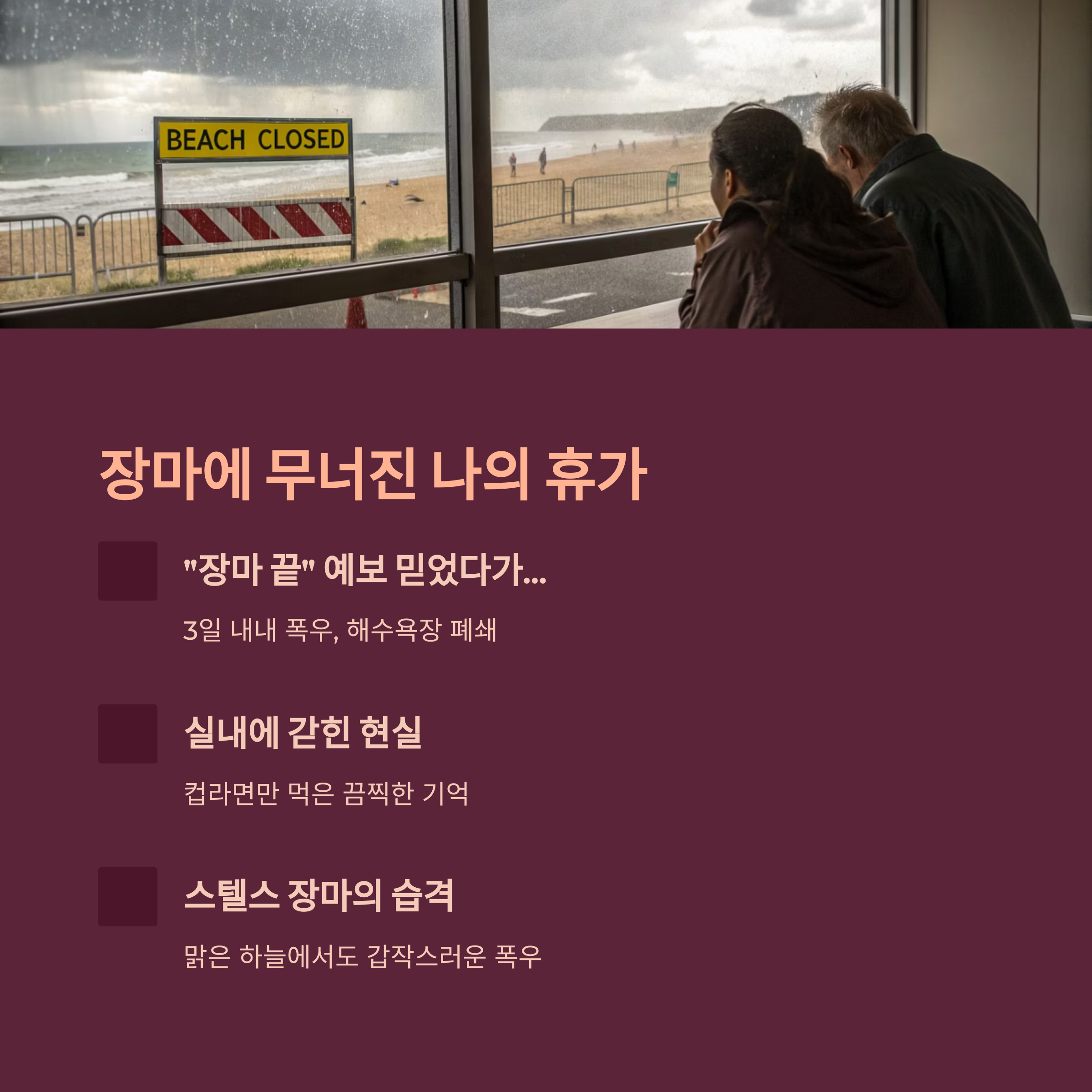 #장마예보실패담 #여름휴가날씨참사 #날씨예보불신 #장마플랜B #기상청믿지말자 #휴가리스크관리