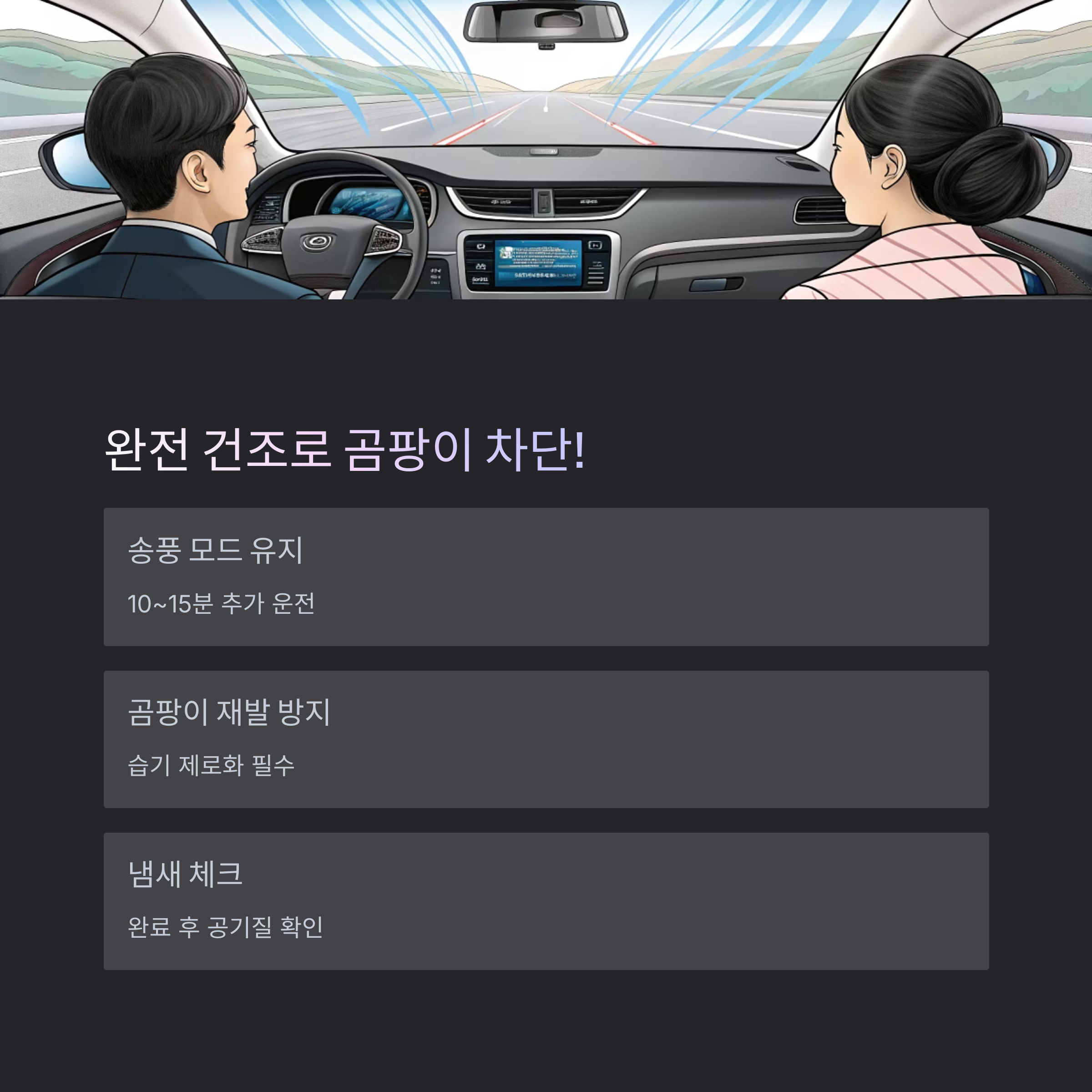 - 차량 정차 전 3분 정도 에어컨을 끄고 송풍만 작동하는 습관도 추천