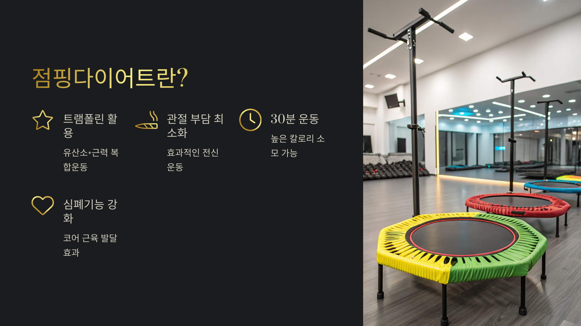 - 트램폴린 없이 점프만 → 무릎 부상 가능성 ↑