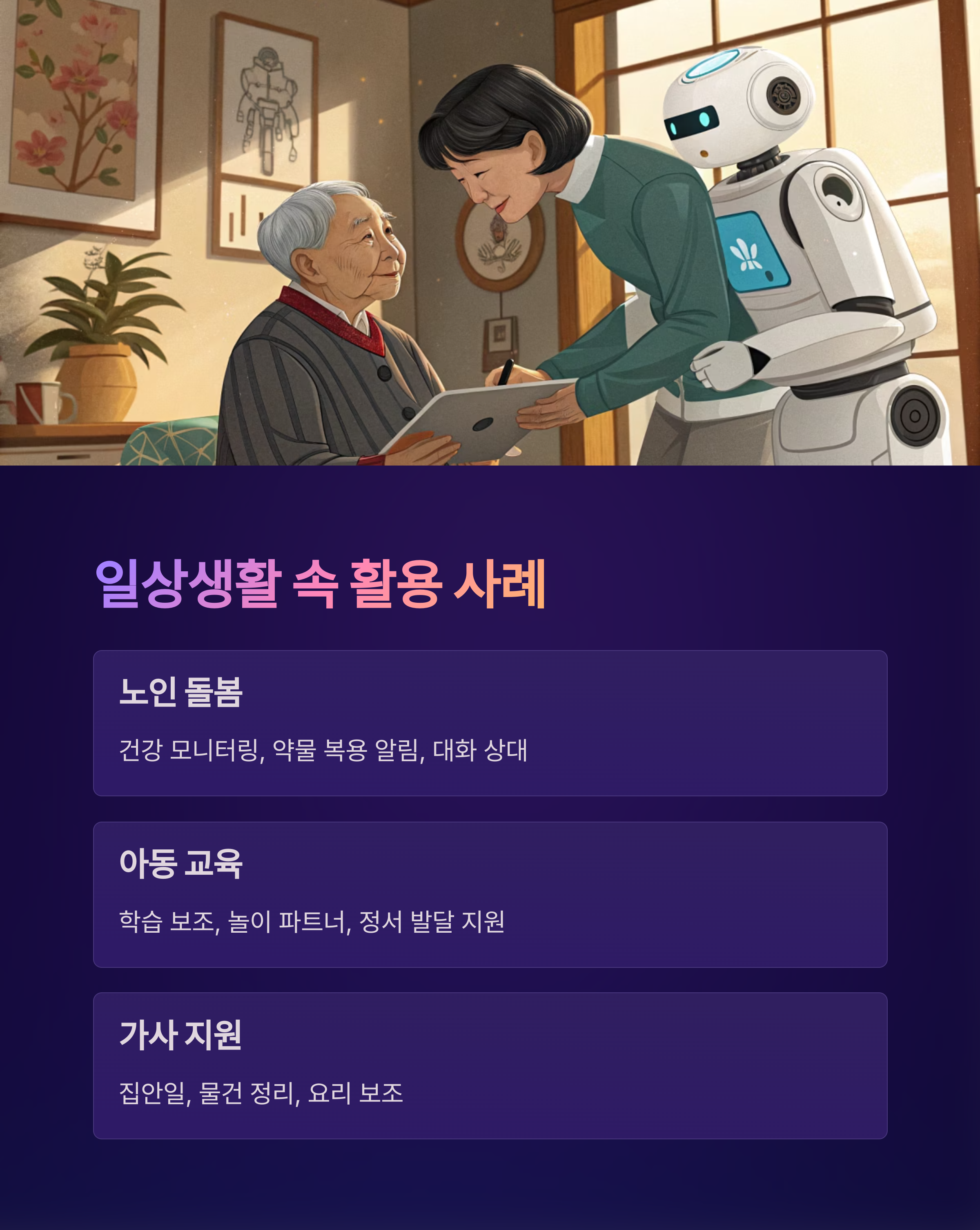 - 부부 맞벌이 가정: “로봇이 아이에게 책을 읽어주고 놀아줘서 죄책감이 덜해요.”