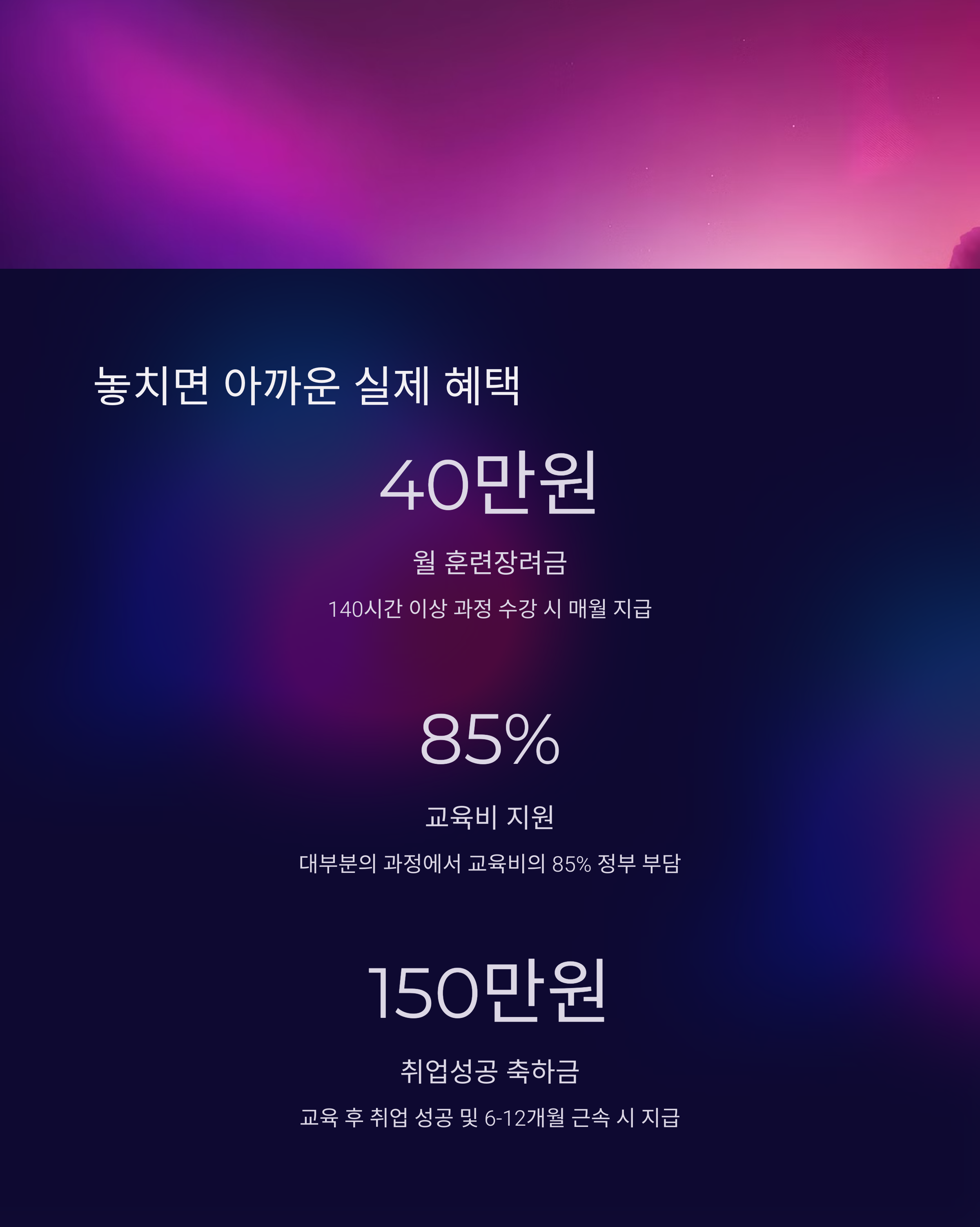 | 주요 혜택 | 수강료 지원, 교재 제공, 취업 연계 등 다양 |