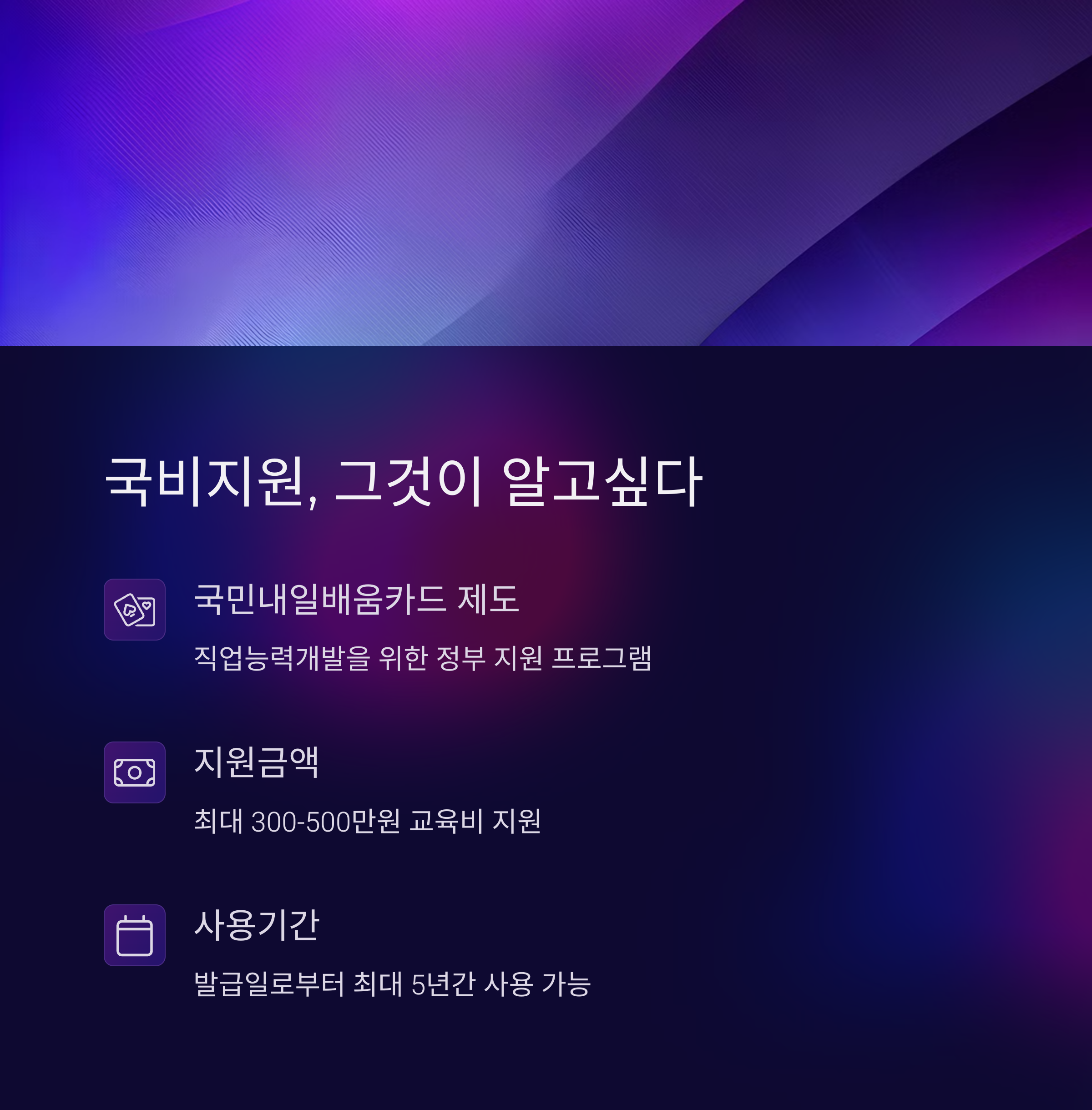 | 대상자 요건 | 지원 혜택 | 수강 방법 |