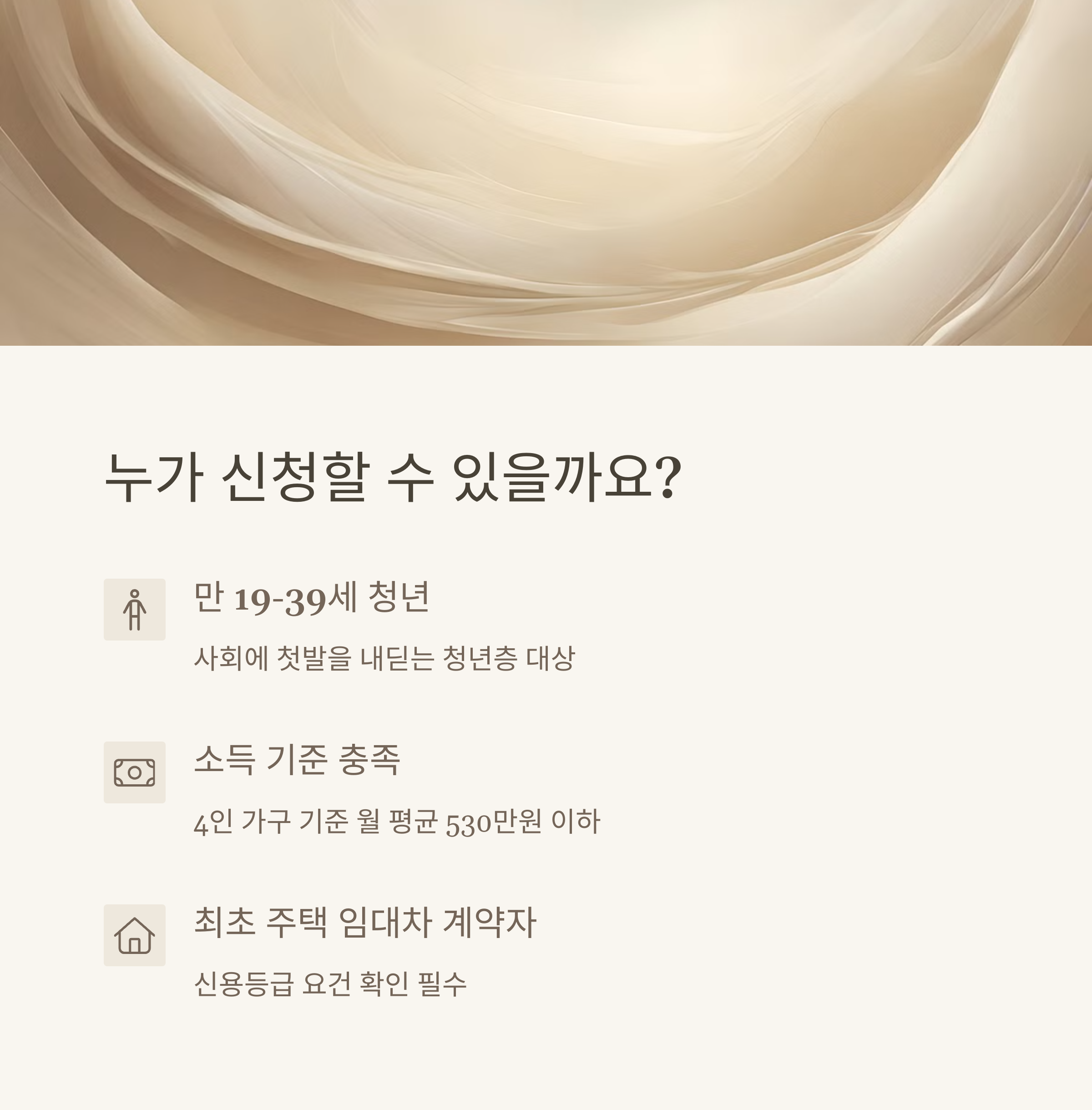 | 대출 대상 | 만 19세 이상 34세 이하 청년 | 무주택자 우대 |