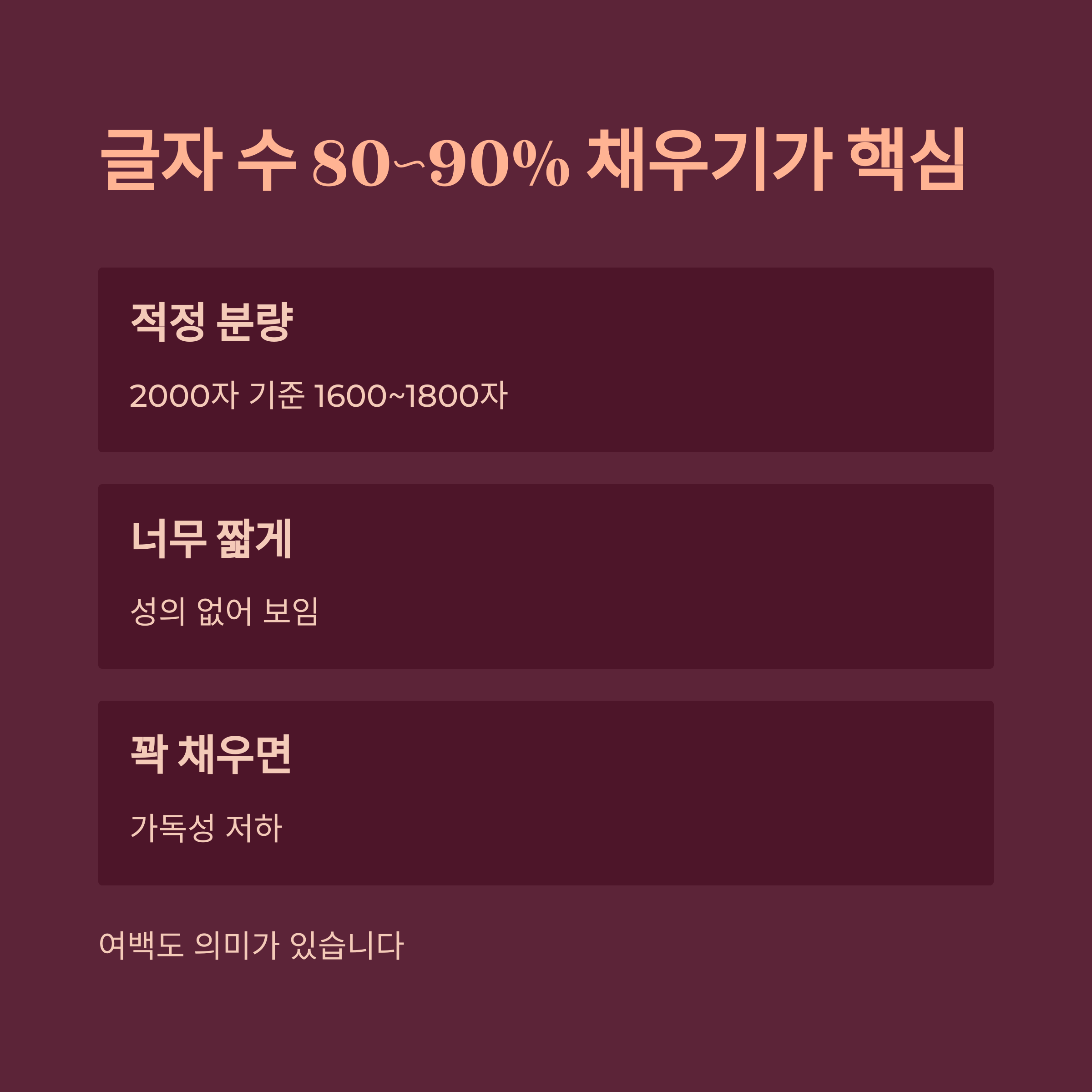 핵심: 전체 글자 수의 80~90%가 가장 전략적인 분량입니다.