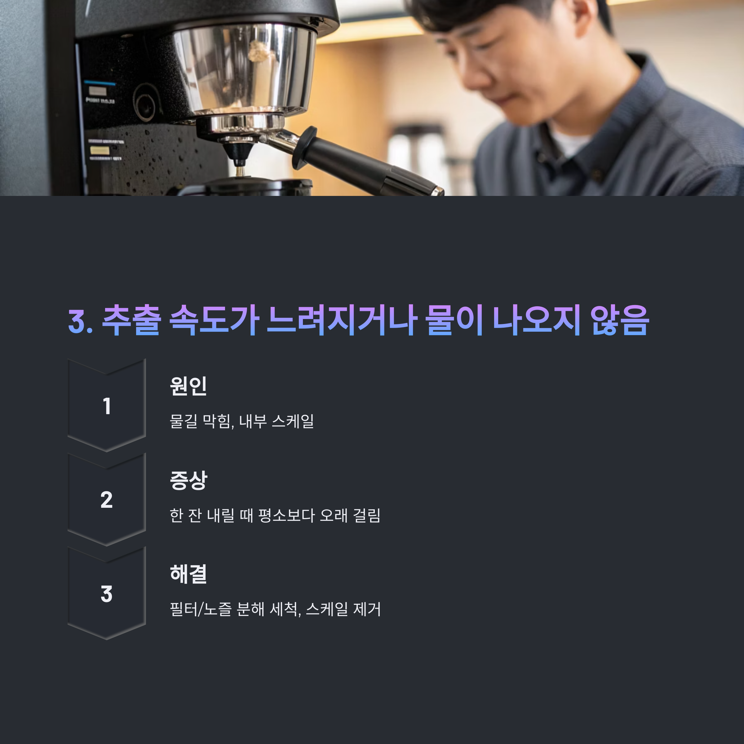 2. 커피 추출이 느려졌다 – “왜 이렇게 오래 걸려?”