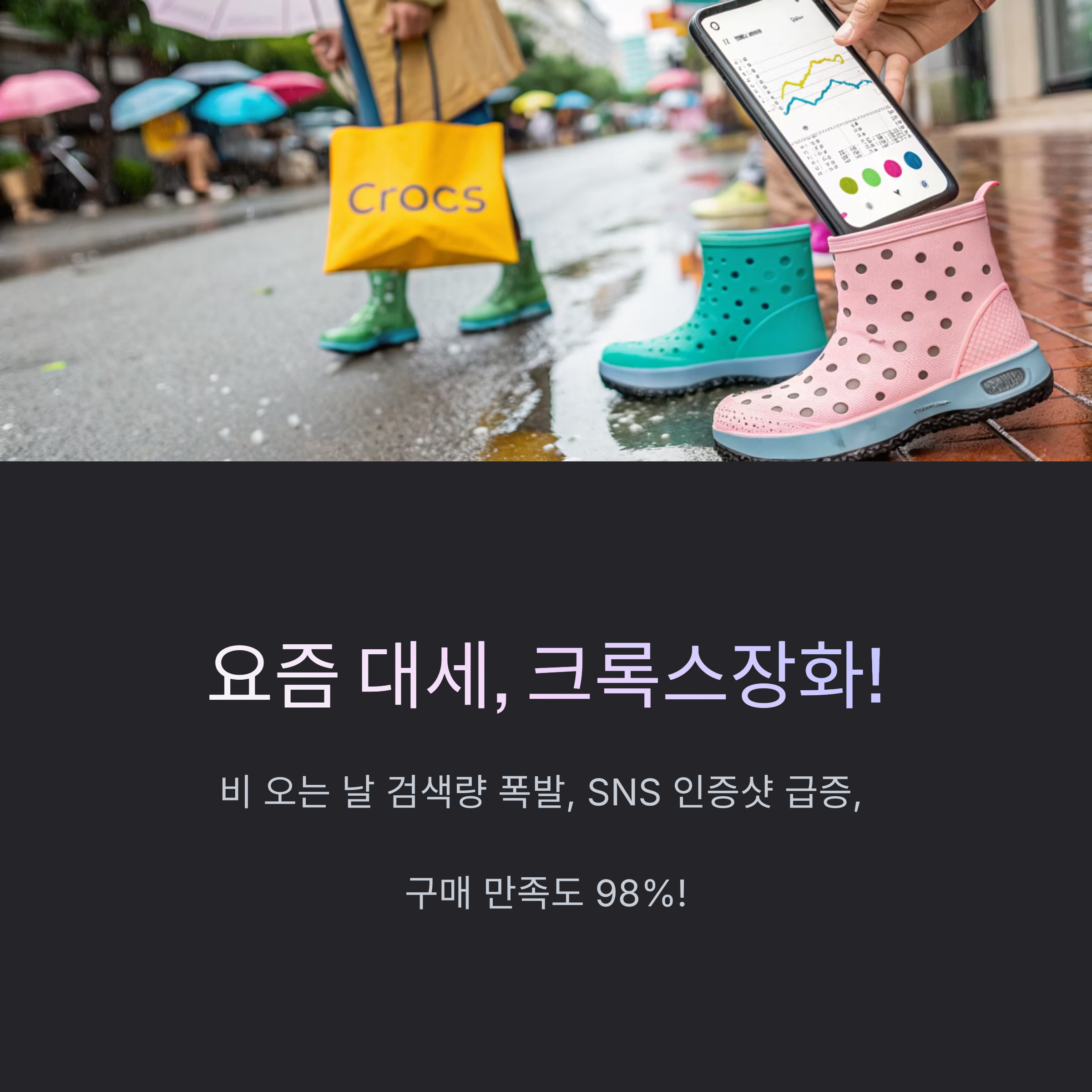 크록스장화 검색량 폭발! 구매 만족도 98%