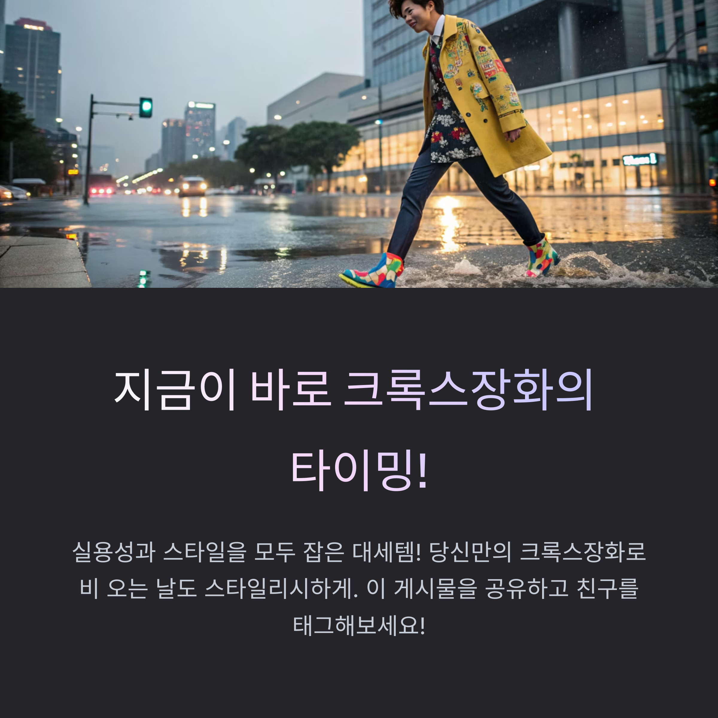 최근 들어 비 오는 날이 부쩍 많아졌죠. 갑작스러운 기후 변화로 인해 방수 아이템의 수요가 급증하고 있어요. 그중에서도 크록스 장화는 '편안한 착용감 + 방수 기능'이라는 두 마리 토끼를 동시에 잡아 큰 인기를 얻고 있어요. SNS에서도 스타일링 사진과 함께 입소문을 타며 많은 사람들이 검색하고 있는 핫 아이템이 되었답니다.