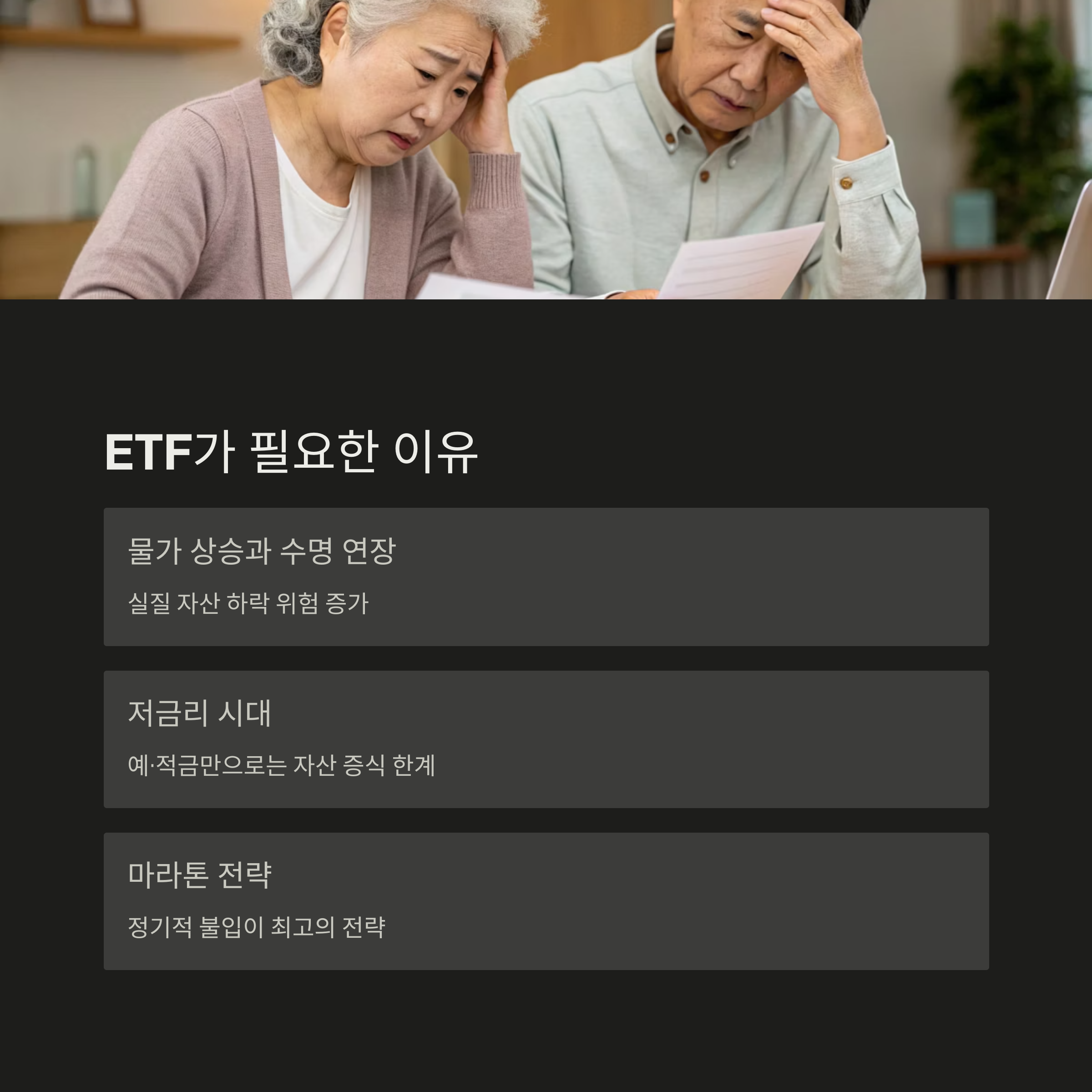 즉, ETF는 장기 수익을 만들어줄 수 있는 구조적 강점을 가진 유일한 투자 수단입니다.