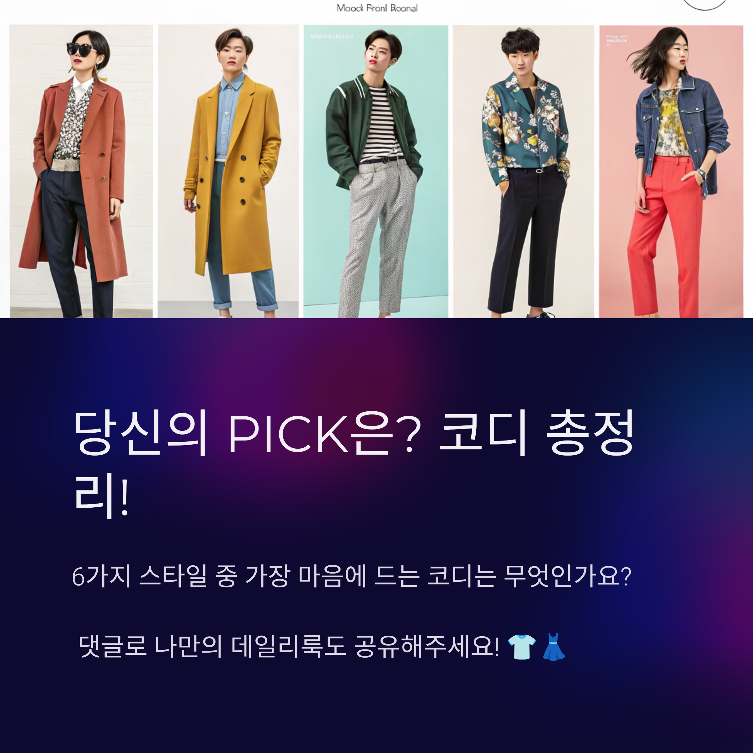 또한 이 코디들은 모두 현실성 있는 착장 예시(실처 코디)**를 바탕으로 구성됐기 때문에, 당장 옷장에서 비슷한 아이템을 찾아 바로 따라 할 수 있다는 점이 큰 장점입니다. 스타일링은 ‘있는 옷 안에서 센스 있게 조합하는 능력’이라는 점에서, 이 예시들은 패션 초보자부터 중급자까지 모두 참고하기 좋습니다.