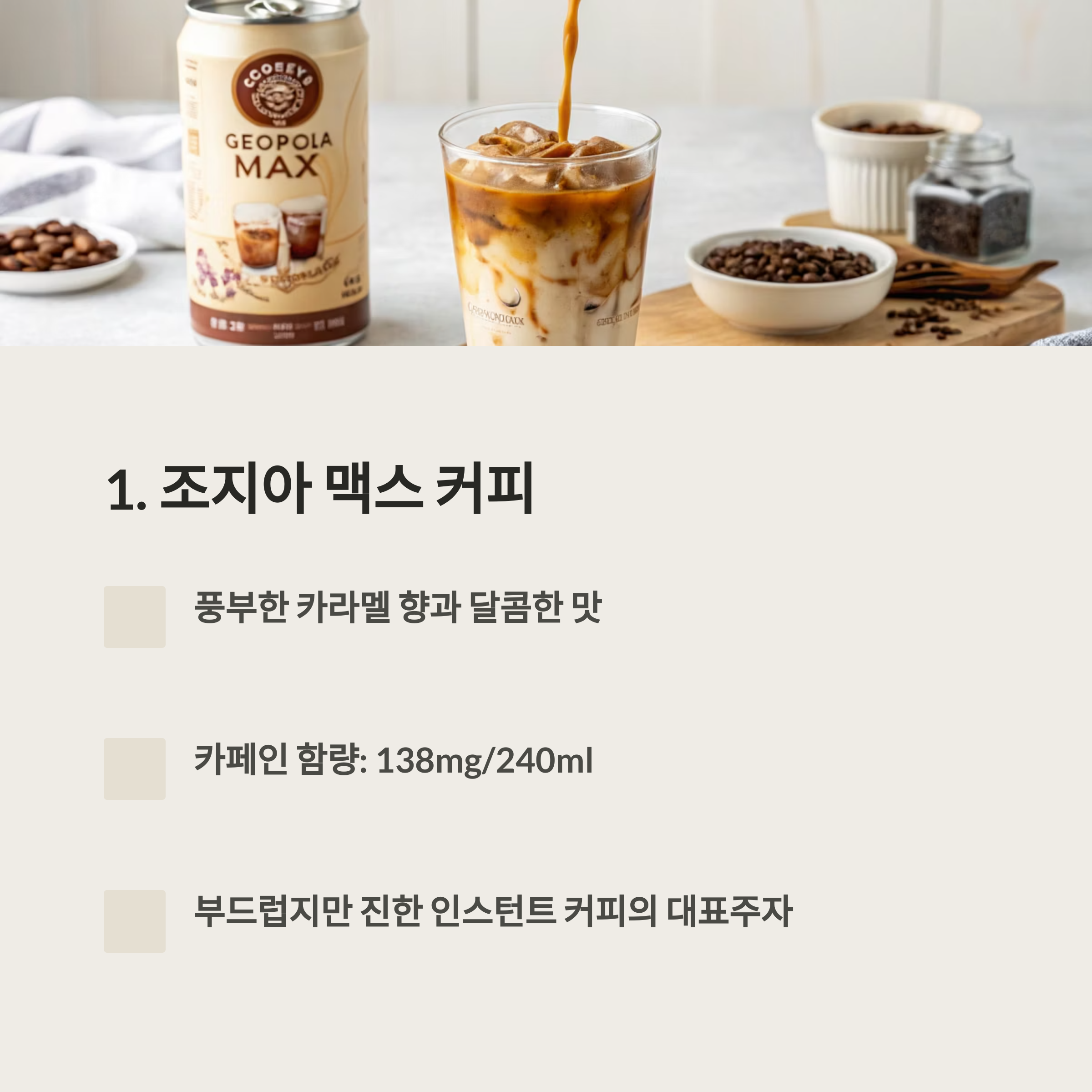 오늘 소개해드린 조지아 맥스 커피, 어떠셨나요? 부담 없는 가격에 달콤한 맛, 그리고 누구나 한 번쯤은 마셔봤을 그 추억의 감성까지. 편의점에서 손쉽게 만날 수 있으니, 다음번에 커피가 당길 때 한 번 선택해보시는 것도 좋을 것 같아요. 앞으로 소개할 다른 인기 캔커피들도 기대 많이 해주세요. 늘 여러분의 취향에 꼭 맞는 정보를 드리기 위해 노력하겠습니다.