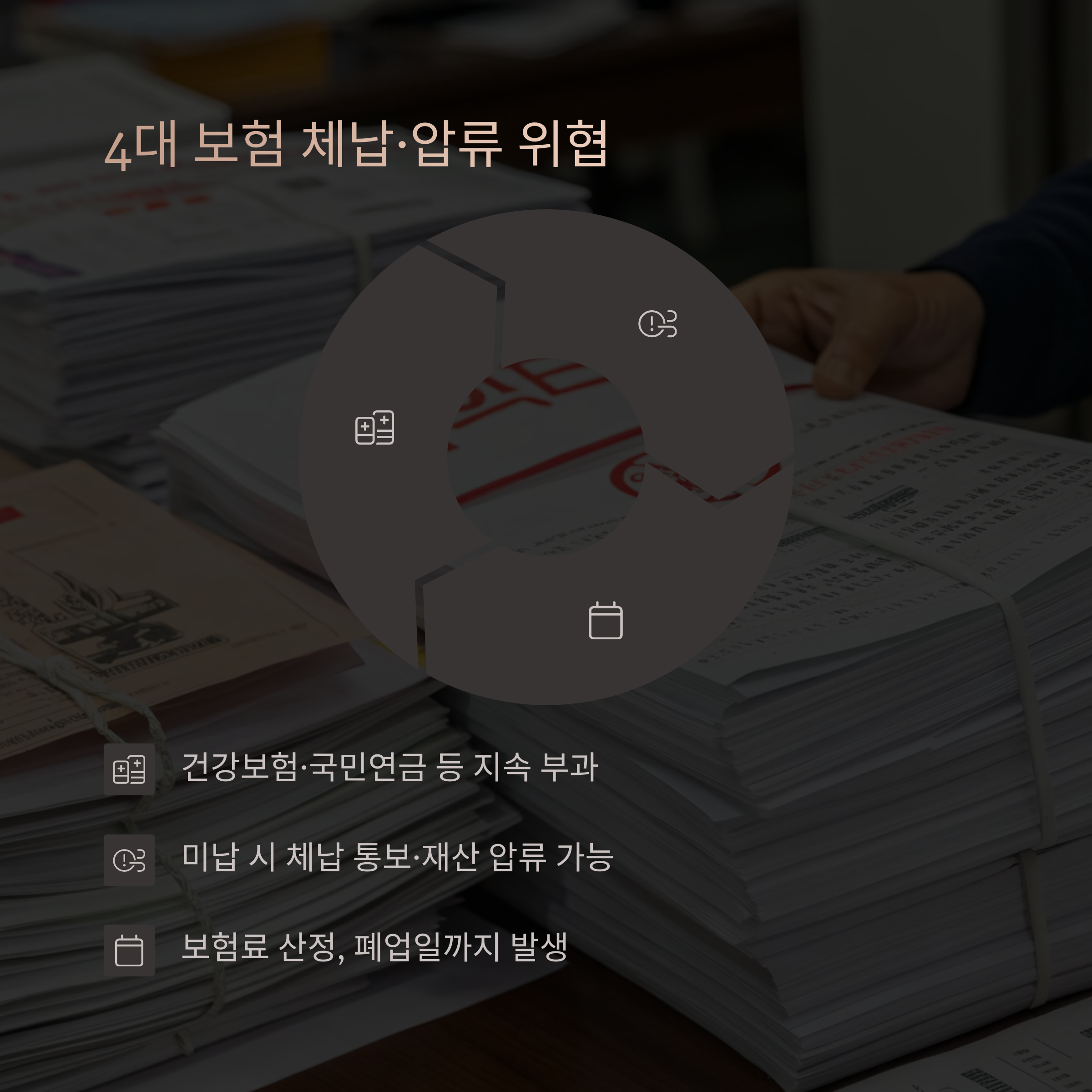 - 건강보험·국민연금 등 4대 보험 체납과 압류 위협