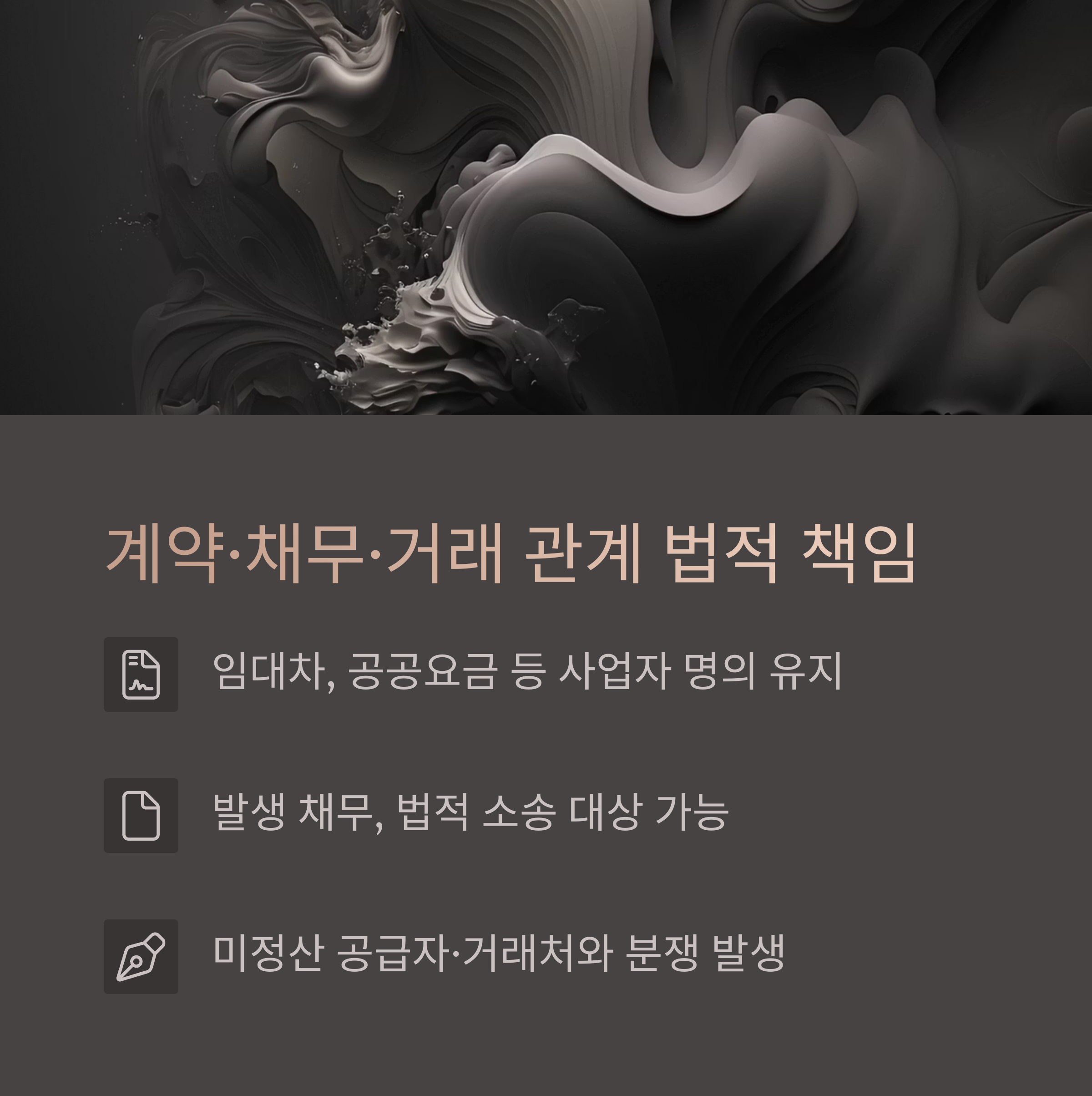 - 사업자 명의 계약, 채무, 거래 관계 지속 책임