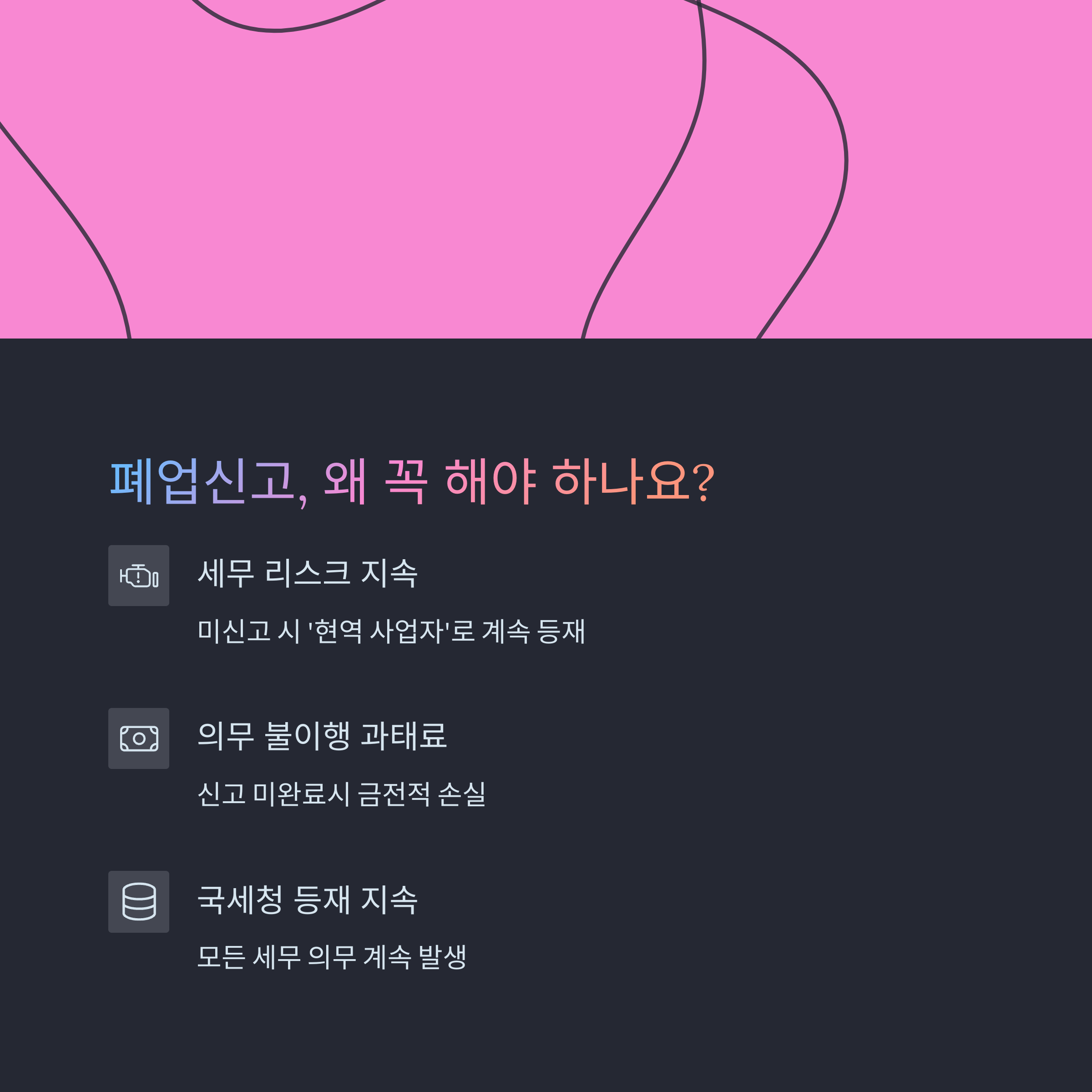핵심: 폐업을 공식적으로 신고하지 않으면 불필요한 세무 위험이 계속 따라다닙니다.