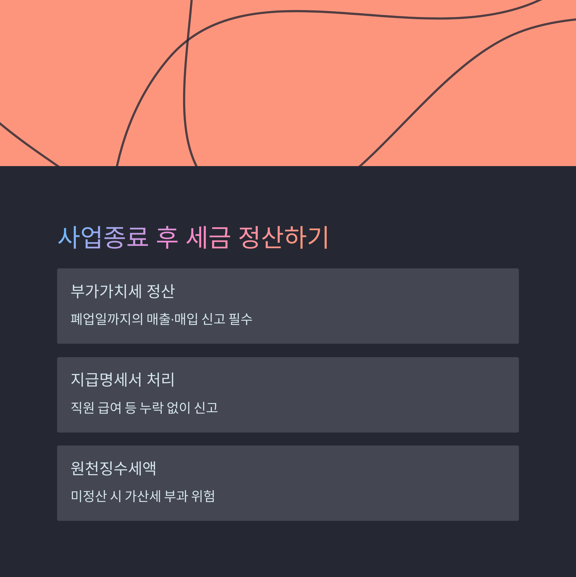 사업을 마무리한다는 것은 단순히 ‘문 닫는다’는 의미를 넘어 법적으로 모든 경제활동의 책임과 신고 의무를 정리한다는 의미입니다.