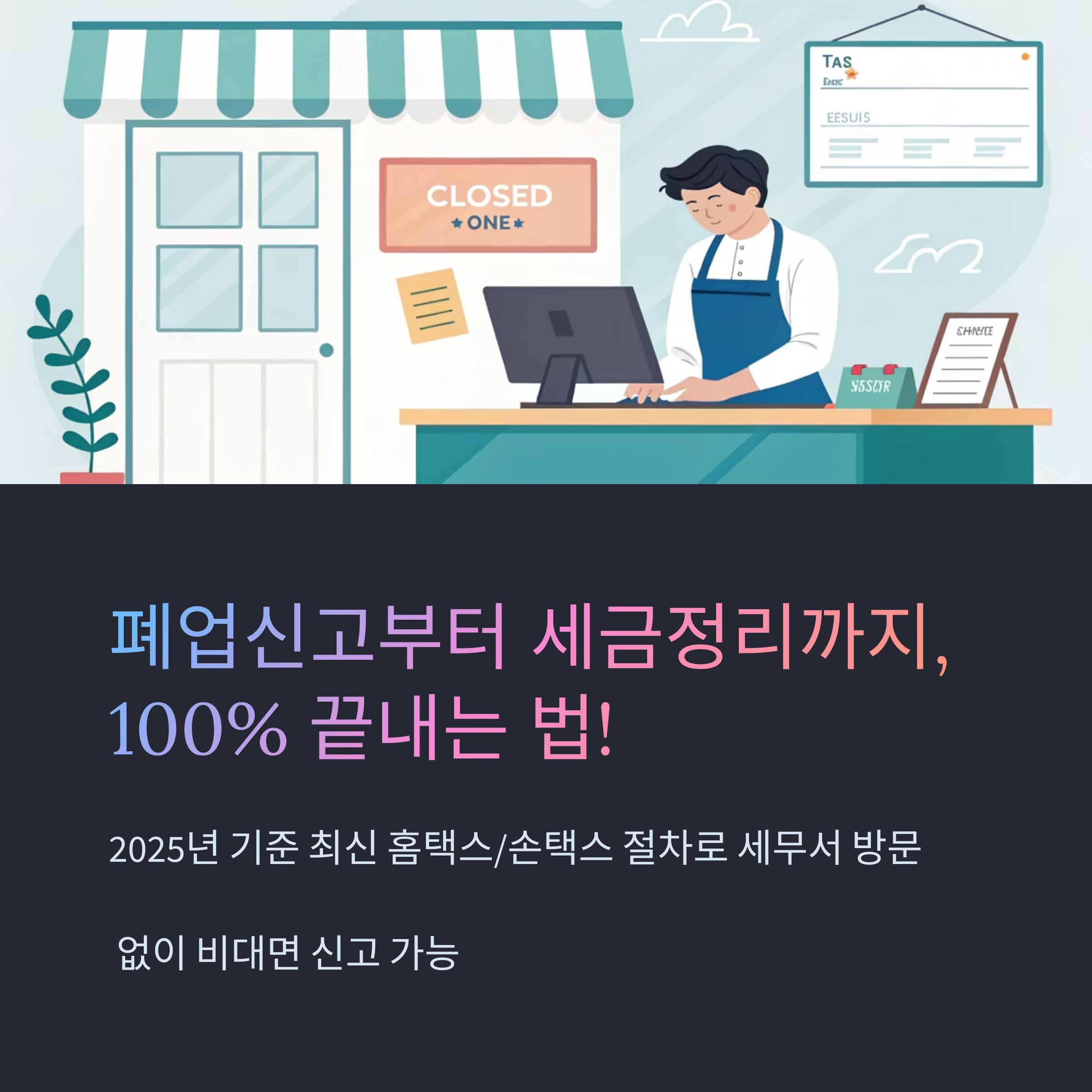 단 한 글자도 빠짐없이 보고 따라 하시면, 누구든지 폐업신고를 스스로 정확하게 완료하실 수 있습니다.