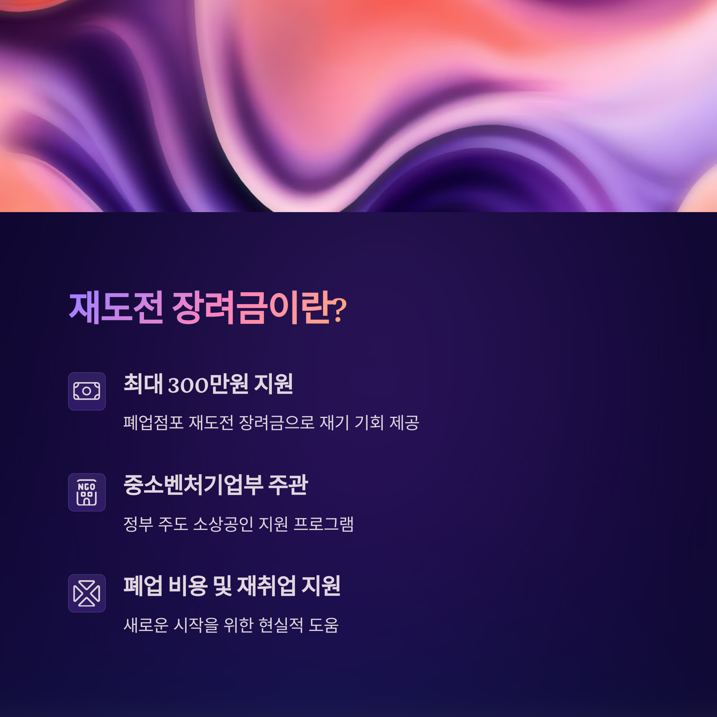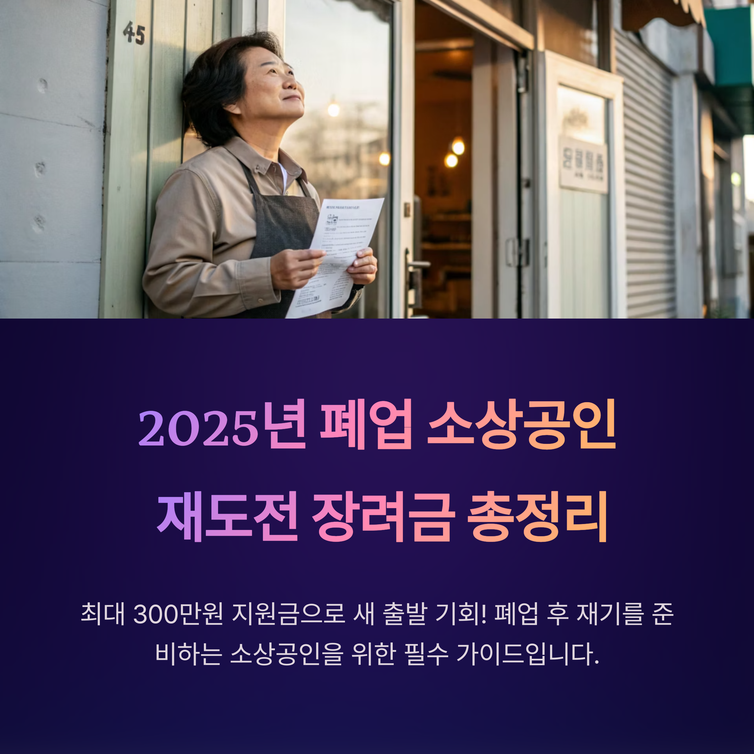 폐업 후 다시 일어서고자 하는 소상공인을 위해 정부는 ‘재도전 장려금’이라는 현금성 지원 제도를 운영하고 있습니다. 2025년 기준 신청 자격, 금액, 신청 방법, 실제 수기까지 이 글에서 모두 확인하세요.