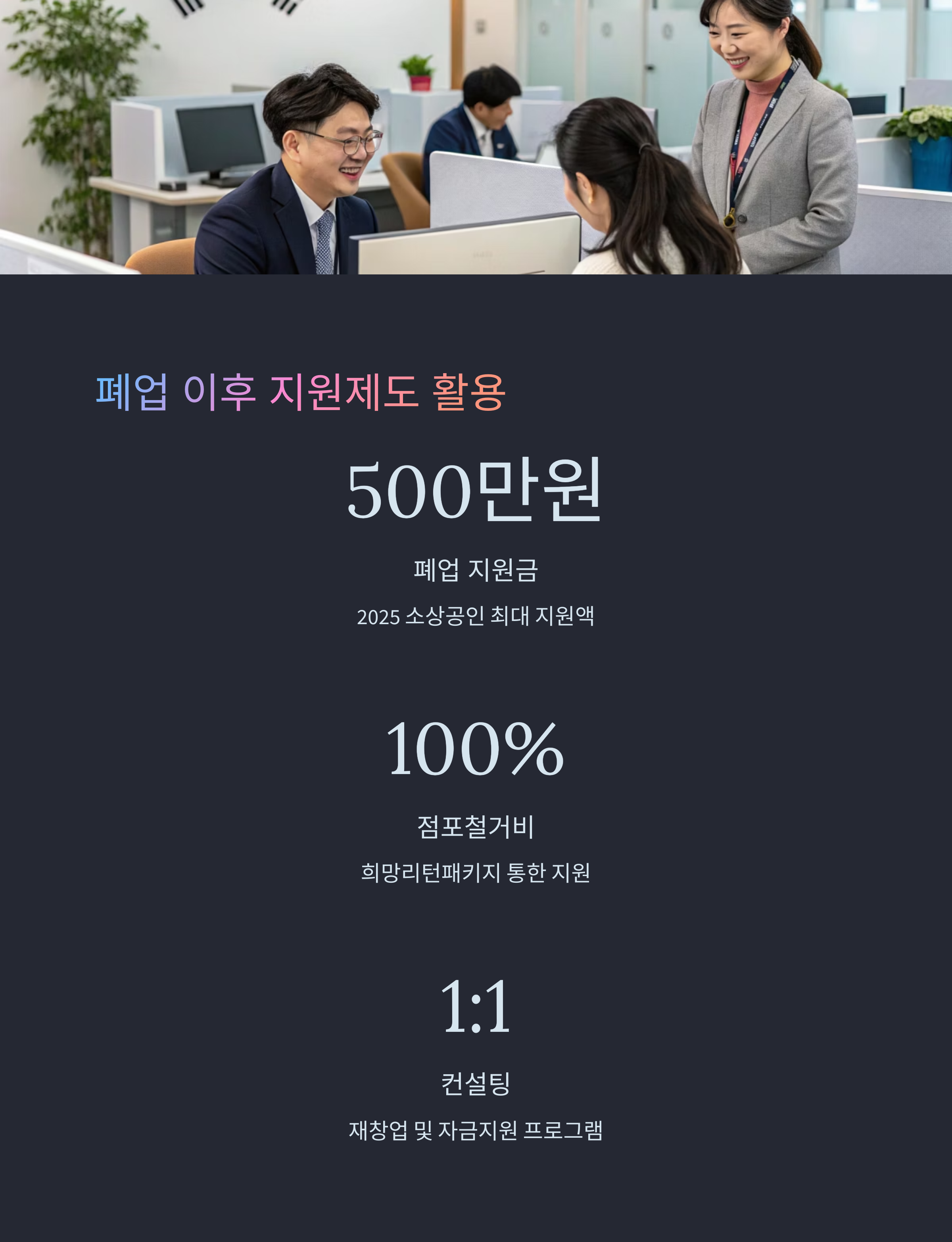 정부의 재창업 제도까지 활용하면 폐업도 재도약의 밑그림이 될 수 있습니다.