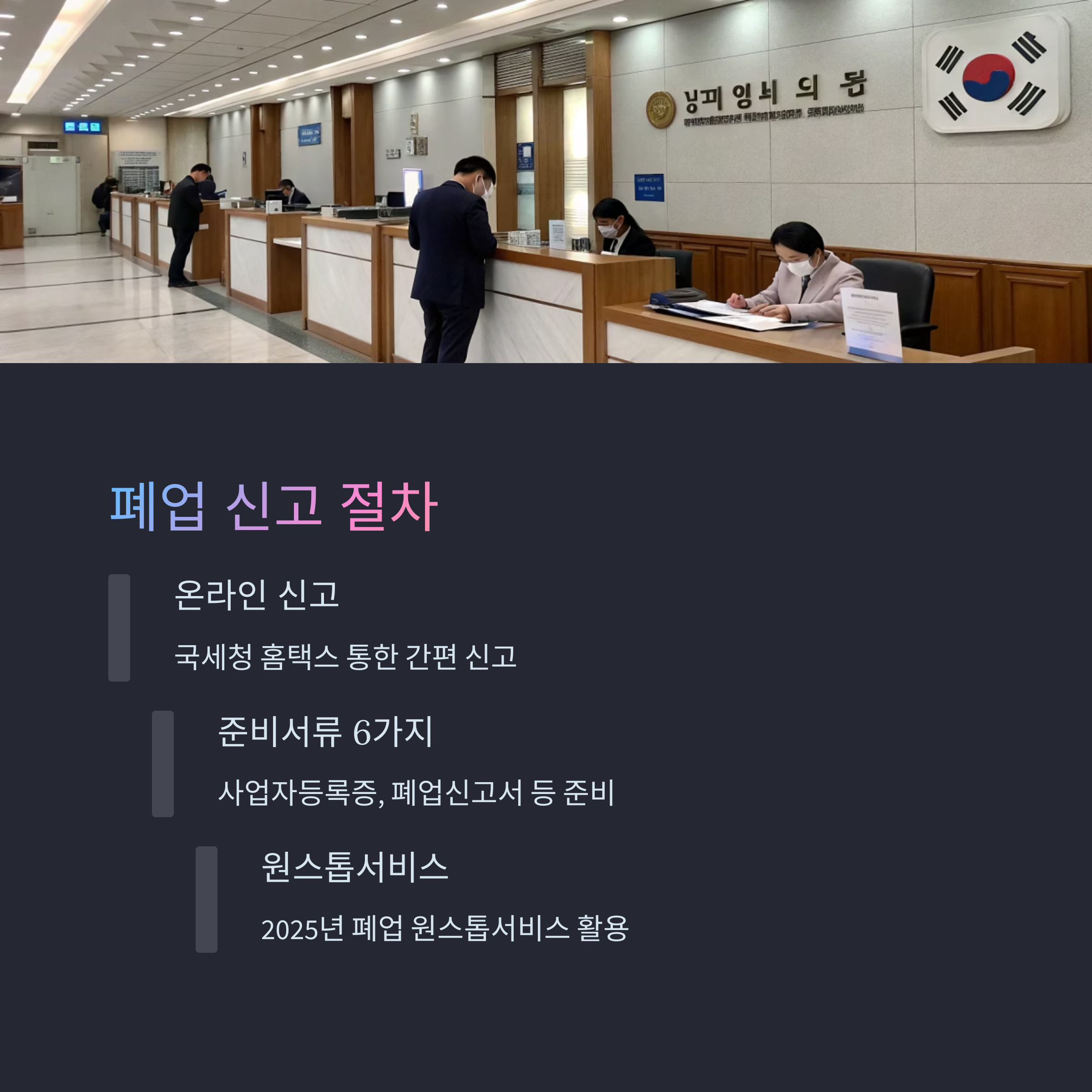 #자영업폐업준비 #세금신고방법 #사업정리절차 #퇴직금정산 #소상공인재도약 #폐업정보