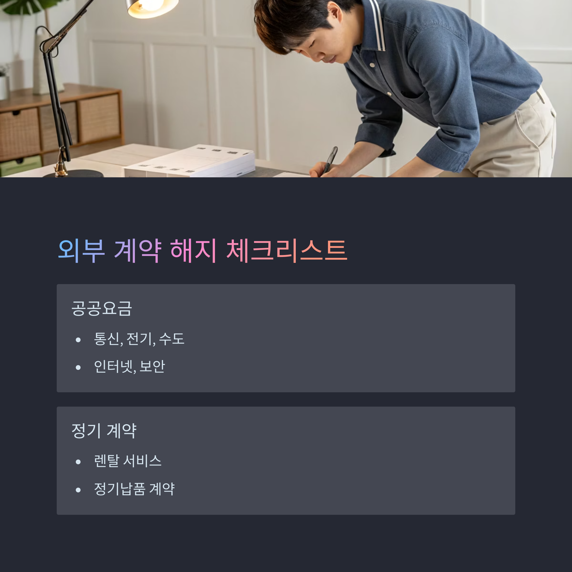 - 외부 계약 해지: 통신, 광고, 가맹, 카드 단말기