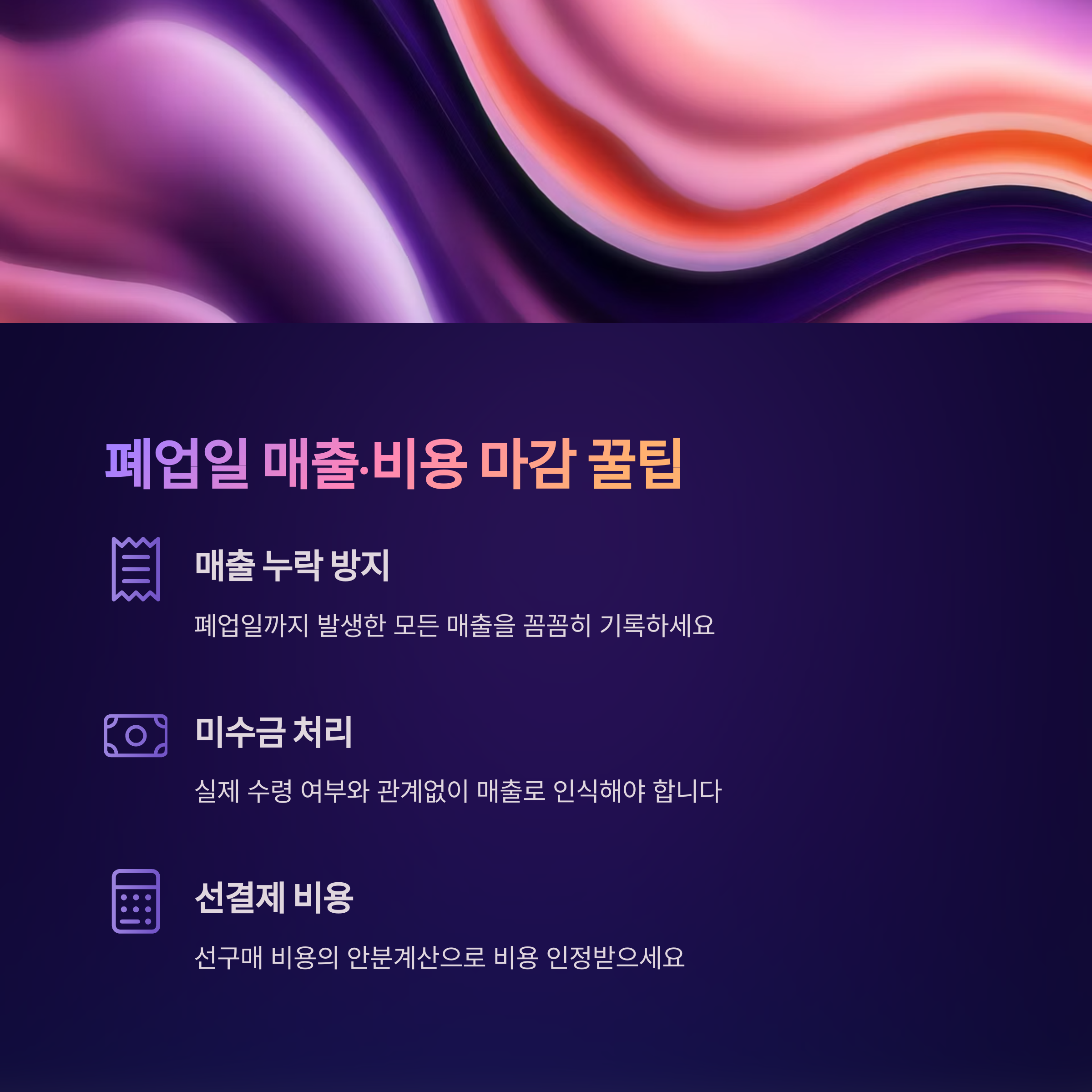 폐업 시점까지 발생한 모든 매출과 비용을 정확히 정리하지 않으면,