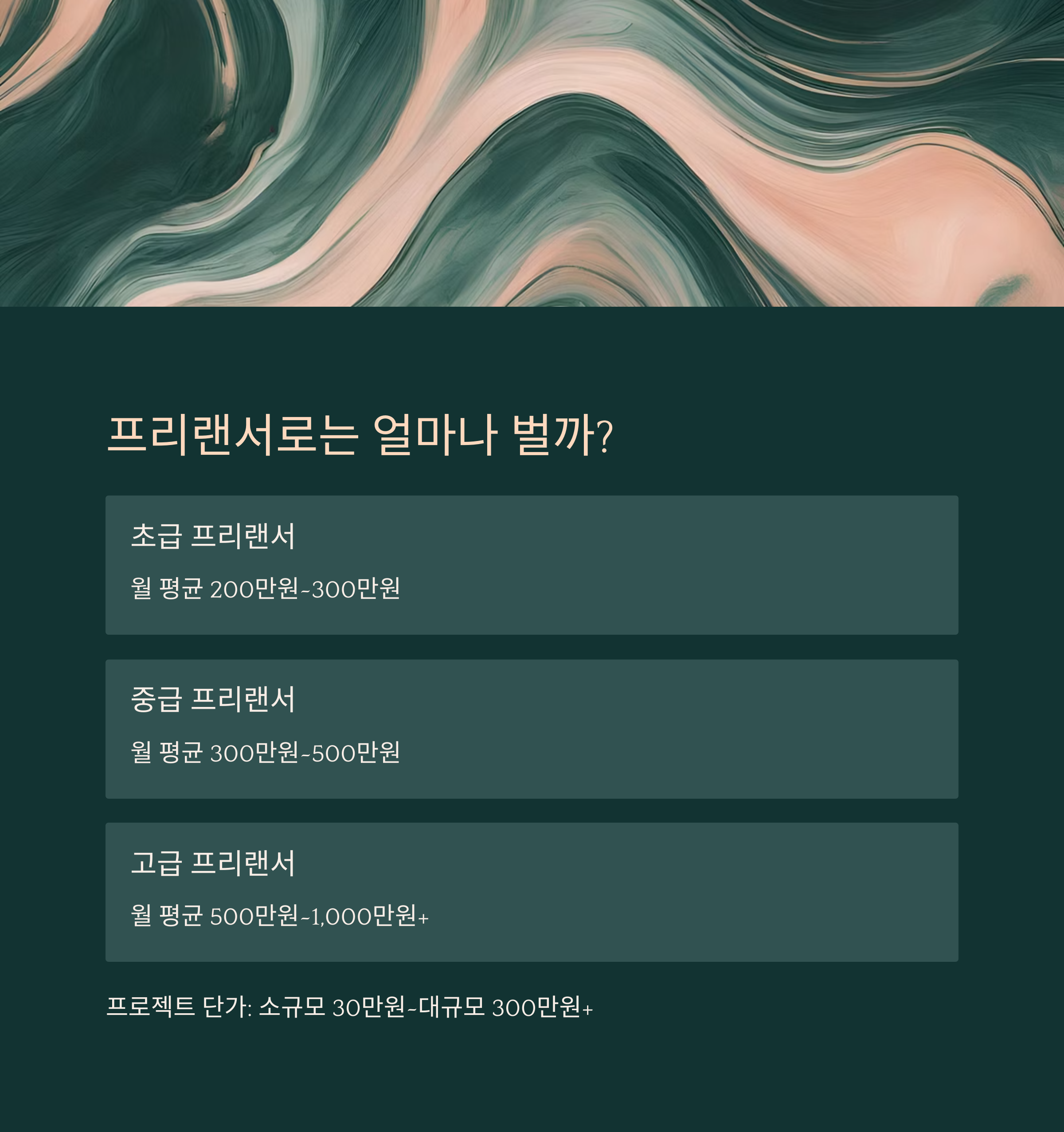 | 프리랜서 | 월 300만 ~ 1,000만 원 이상 | 실력, 제안력에 따라 변동 |