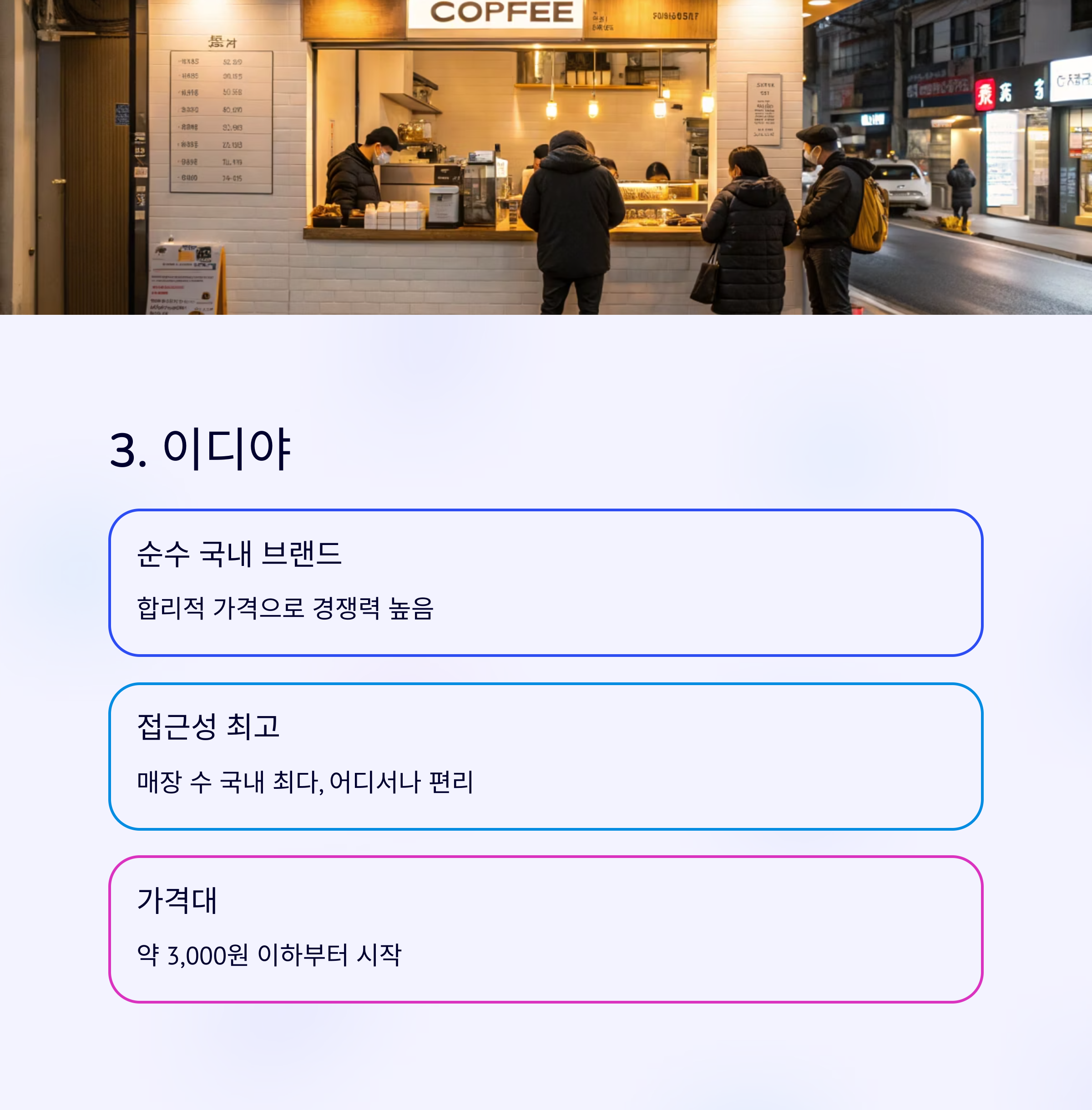 여러분, 혹시 이런 적 있으시죠? 카페를 가려고 하는데 도대체 어디를 가야 할지 고민될 때요! 요즘은 워낙 다양한 커피 프랜차이즈가 있어서 선택이 어렵기도 해요. 그래서 오늘은 한국에서 가장 인기 있는 7개의 커피 전문점을 한눈에 비교해 드릴게요. 브랜드별 특징과 분위기, 가격대까지 꼼꼼히 알려드릴게요.