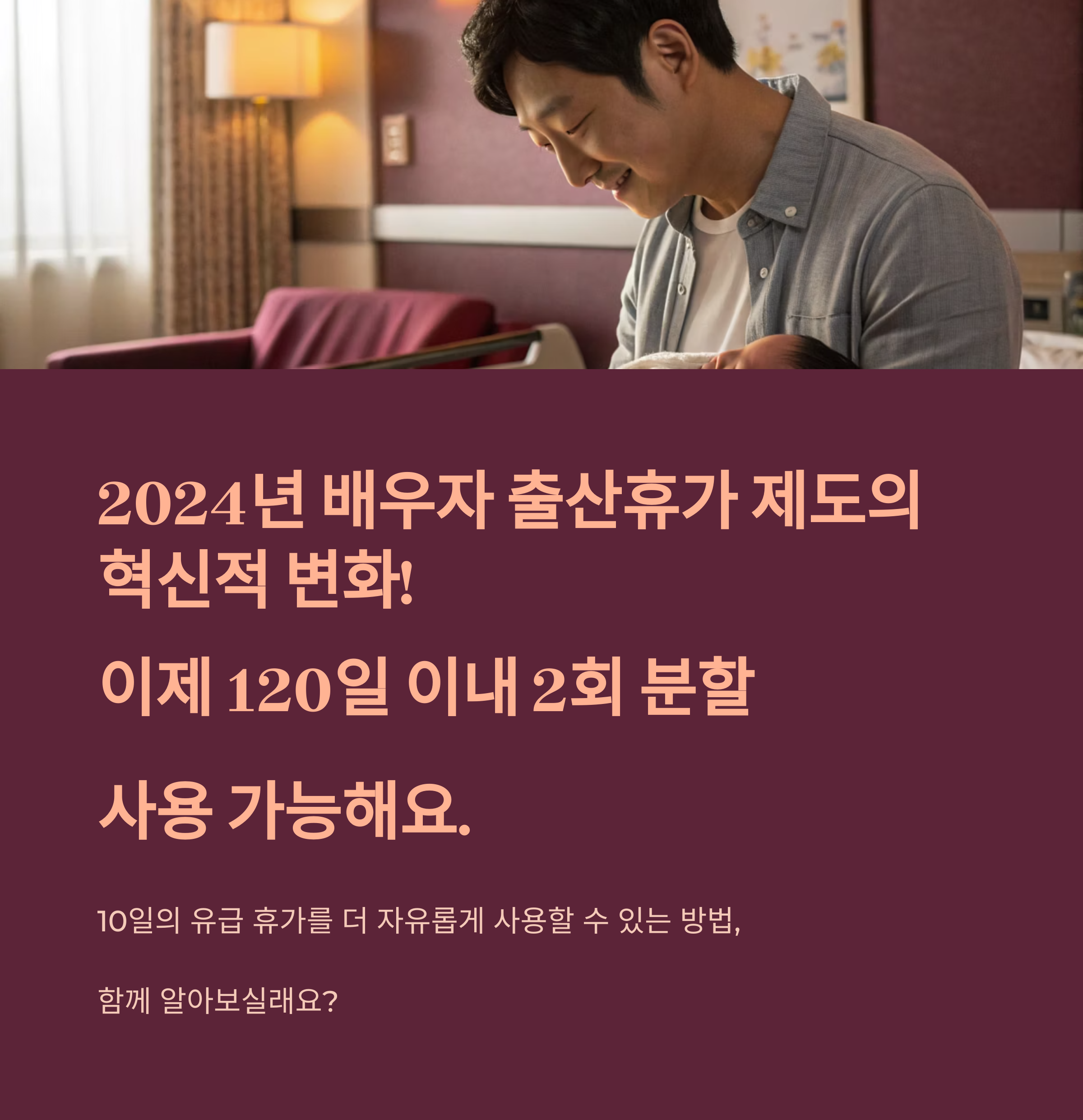 2024년 5월 1일부터 배우자 출산휴가 제도가 전면 개정되면서 사용 가능 기간은 90일 → 120일,