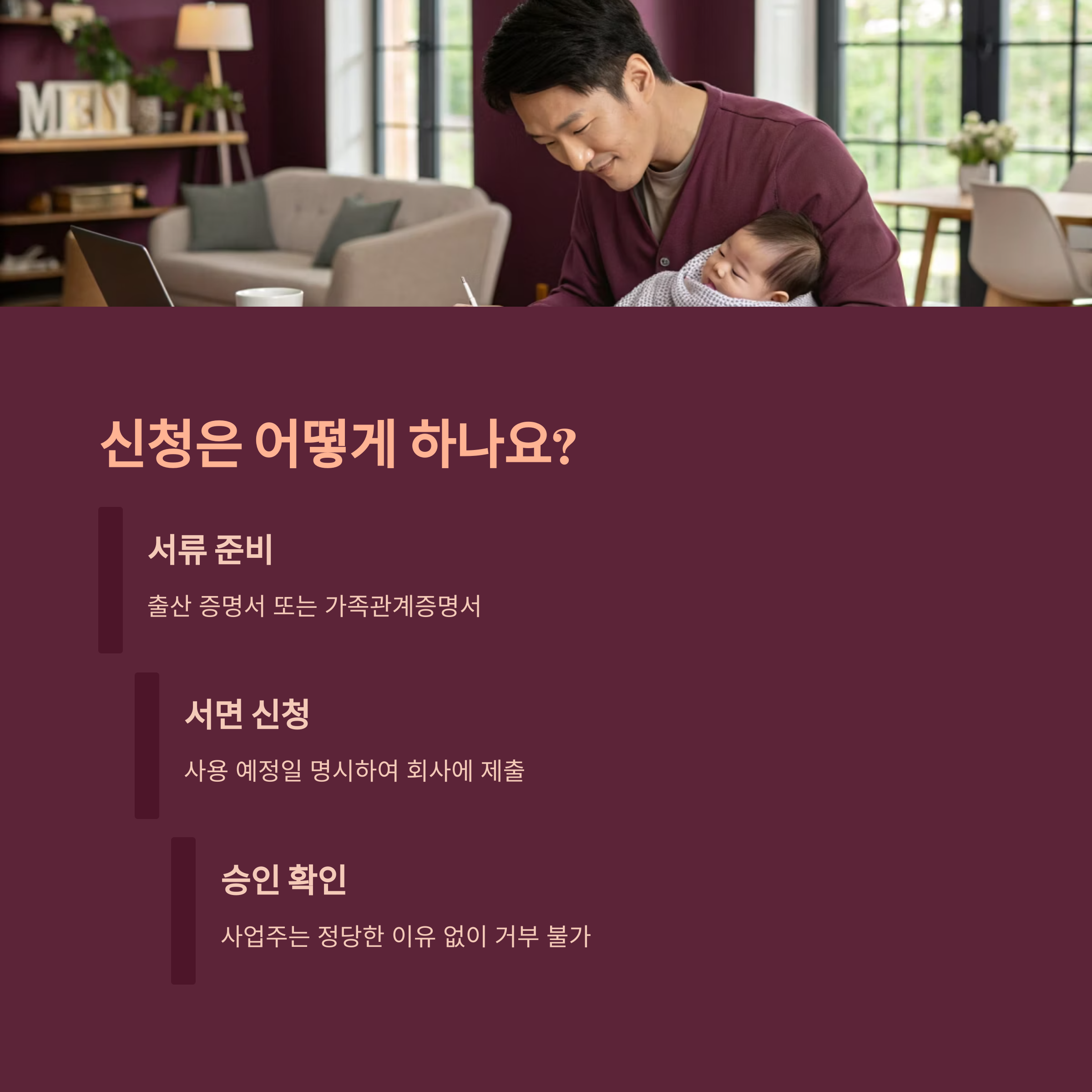 실제로 육아의 첫걸음부터 함께하고 싶은 아빠, 산후 회복과 가족 중심의 양육을 실천하고자 하는 근로자라면