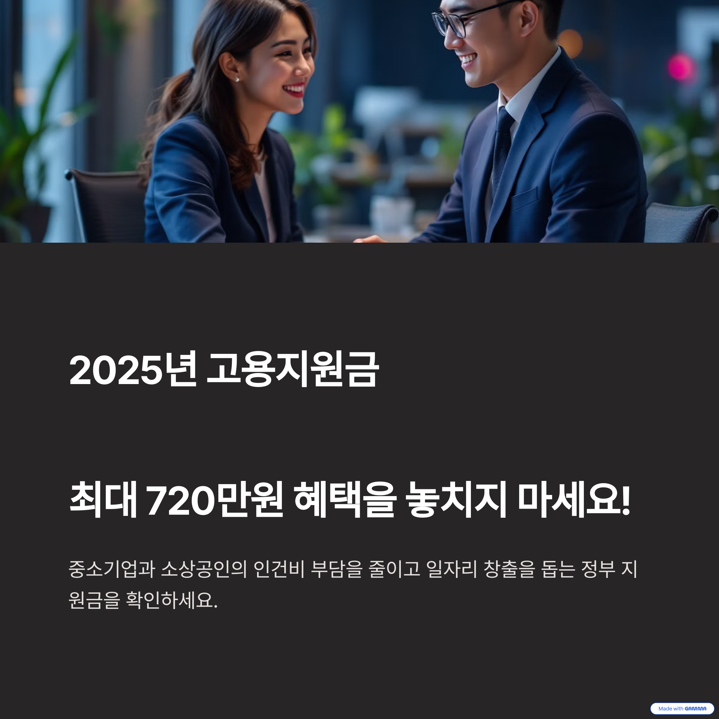 #2025고용지원금 #최대720만원지원 #고용지원금신청방법 #중소기업지원제도 #근로자고용지원금 #고용노동부지원금