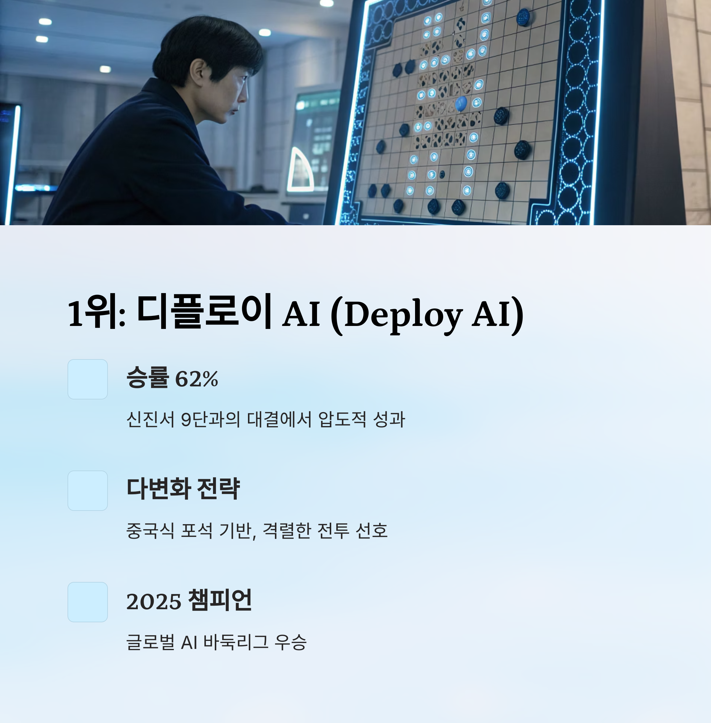 2025년 AI 바둑 대회의 절대 강자는 디플로이 AI였습니다.