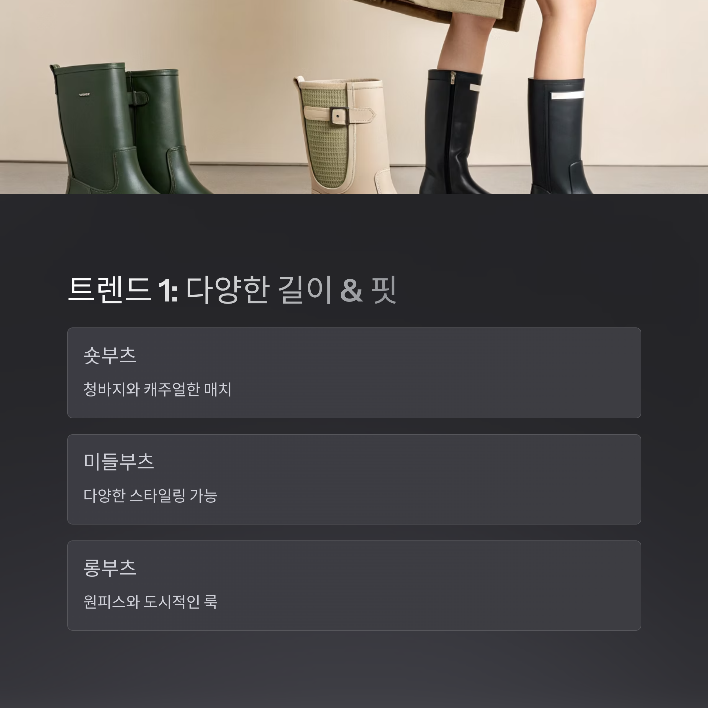 2025년, 레인부츠는 스타일링의 중심 아이템으로 완전히 자리 잡았어요.