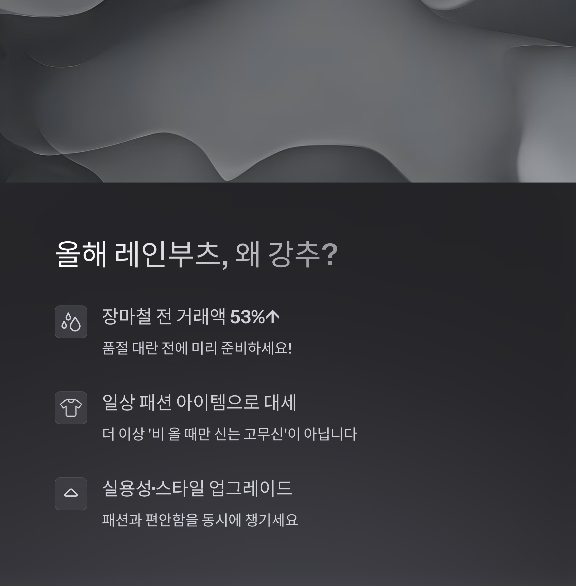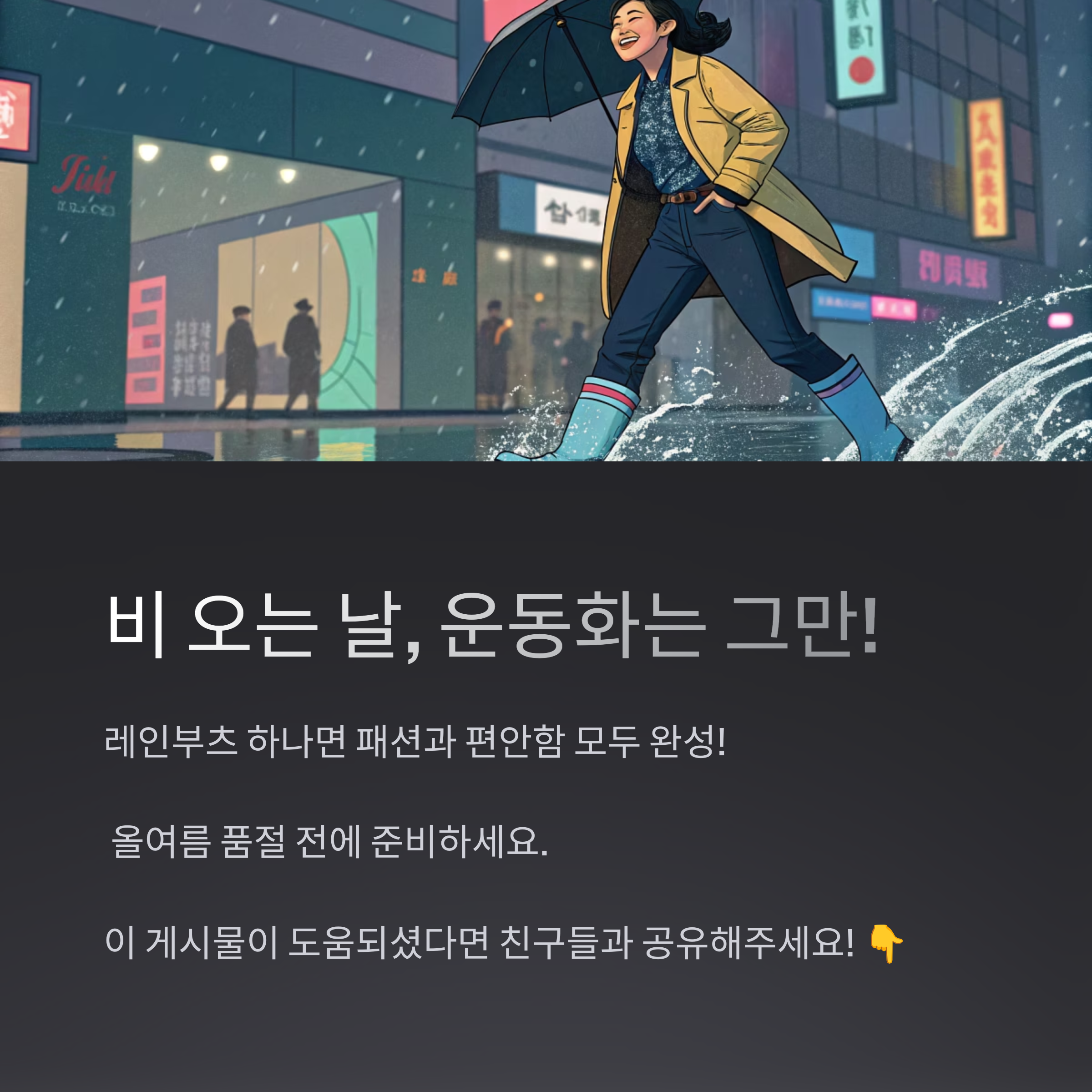 🛍️ 결론 : 레인부츠는 더 이상 ‘선택’이 아닌 ‘필수템’!