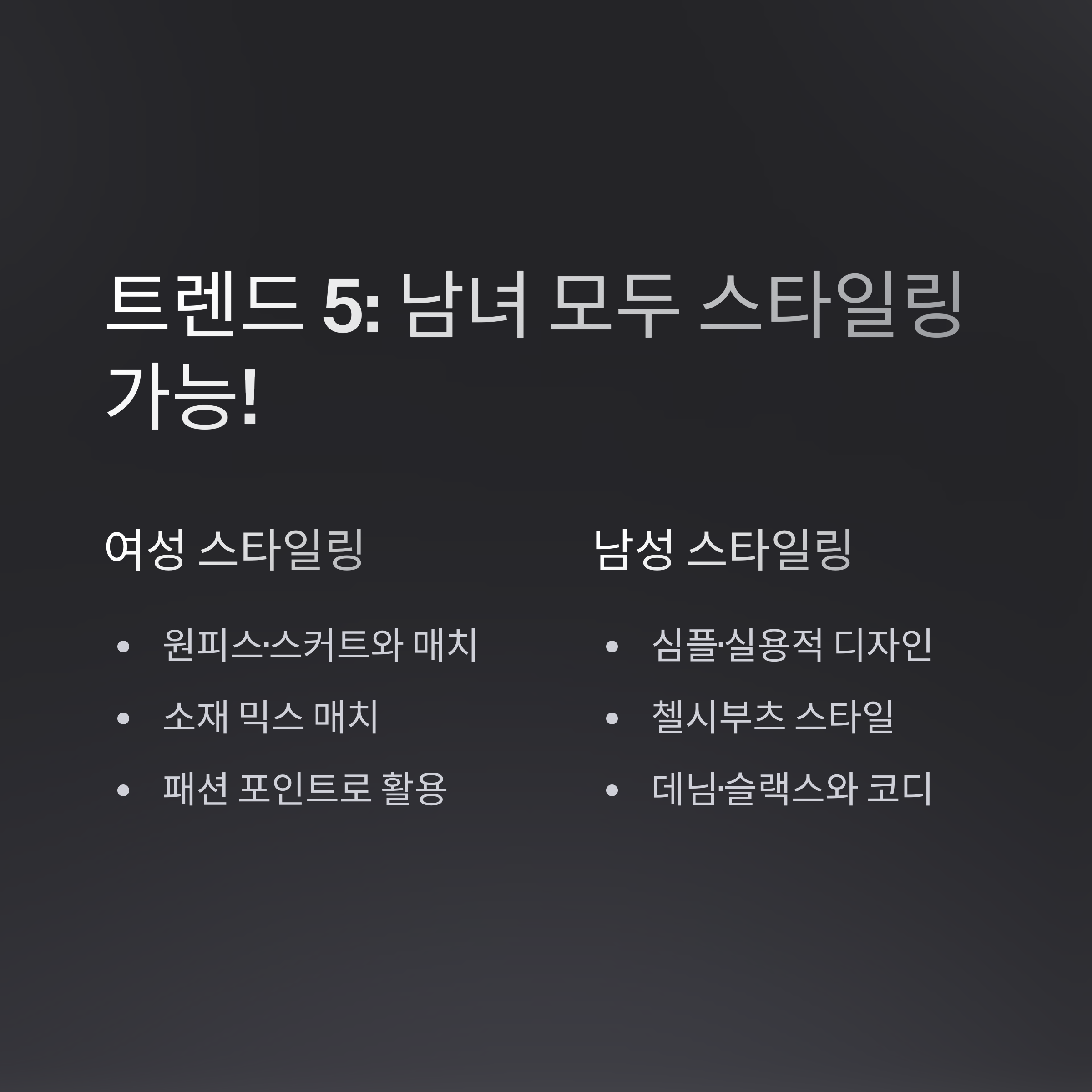 - 미들 기장 부츠 → 롱스커트, 와이드 팬츠와 매치