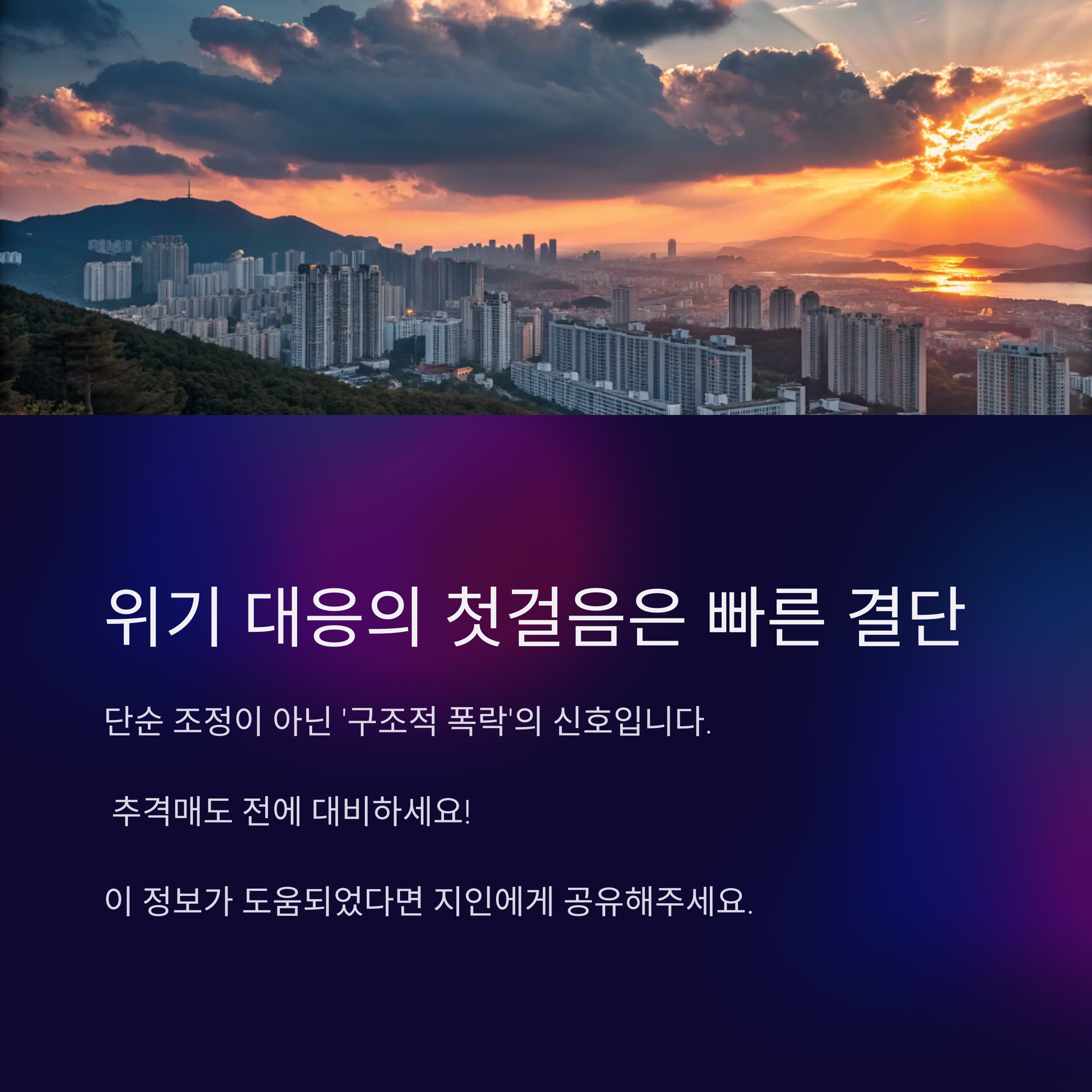 이 다섯 가지 요소가 동시에 작용하면서 지금의 부산 아파트 시장은 사실상 붕괴 직전 상황에 이르렀습니다. 개별 요인보다 이들의 시너지가 훨씬 더 치명적이라는 점에서, 빠르고 전략적인 대응이 필요한 시기입니다.