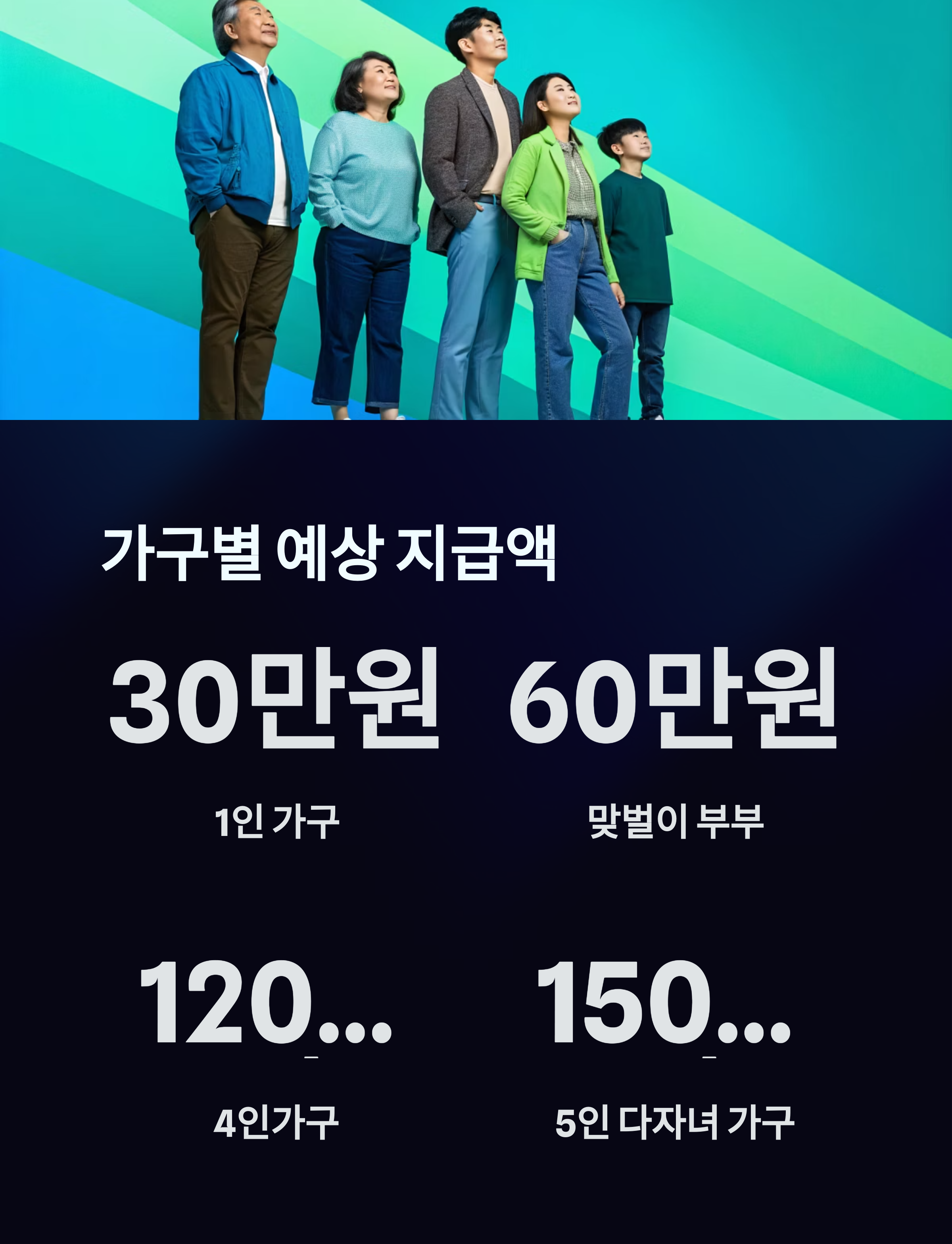 → 별도 신청 없이 세대 구성원 모두 개별 지급 가능성이 높지만, 일부 지자체는 세대주 중심 신청을 요구할 수 있습니다.
