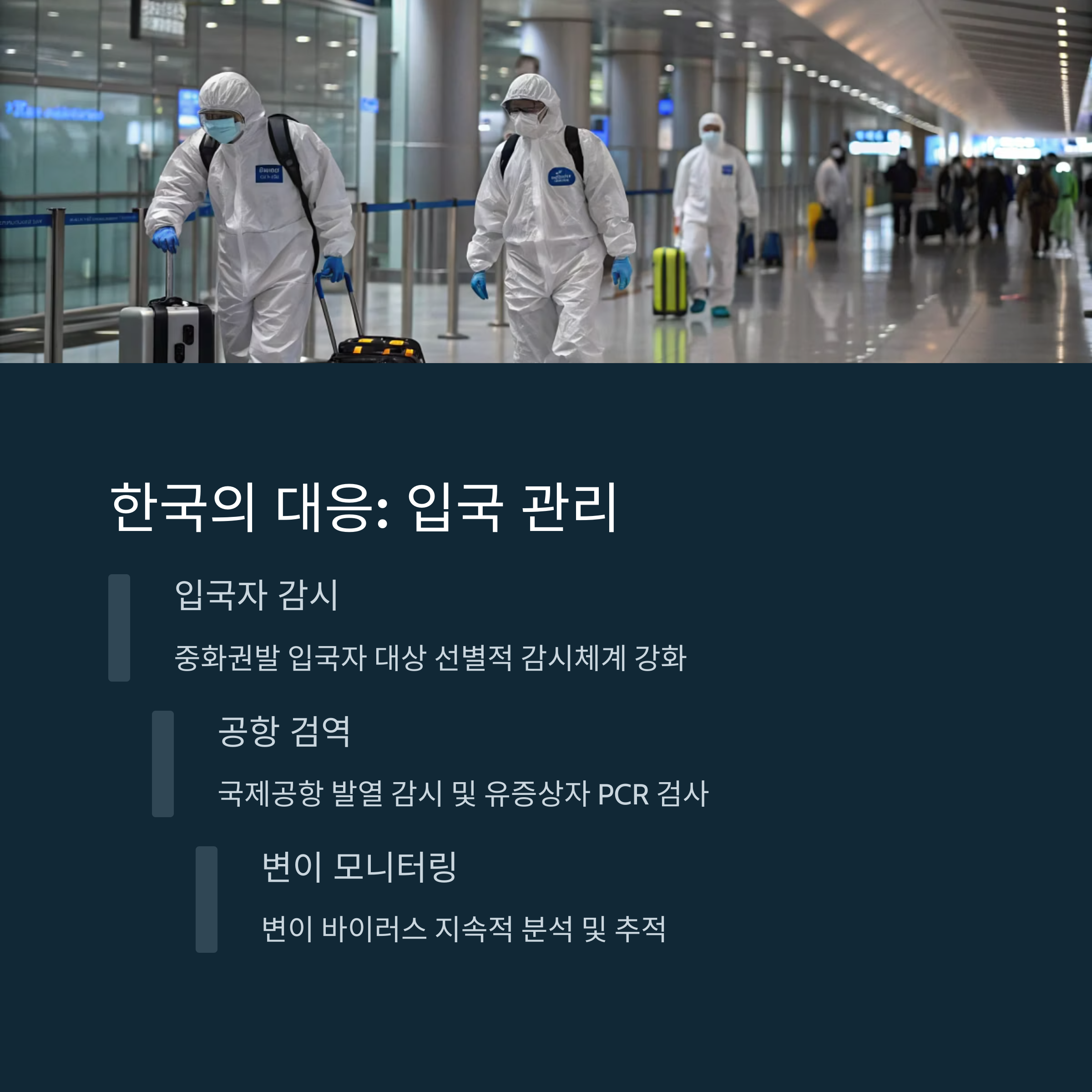 이에 따라 한국 정부는 중화권발 유입을 대비한 입국 감시 강화, 변이 분석, 고위험군 선제 보호 중심의 전략을 세우고 있습니다