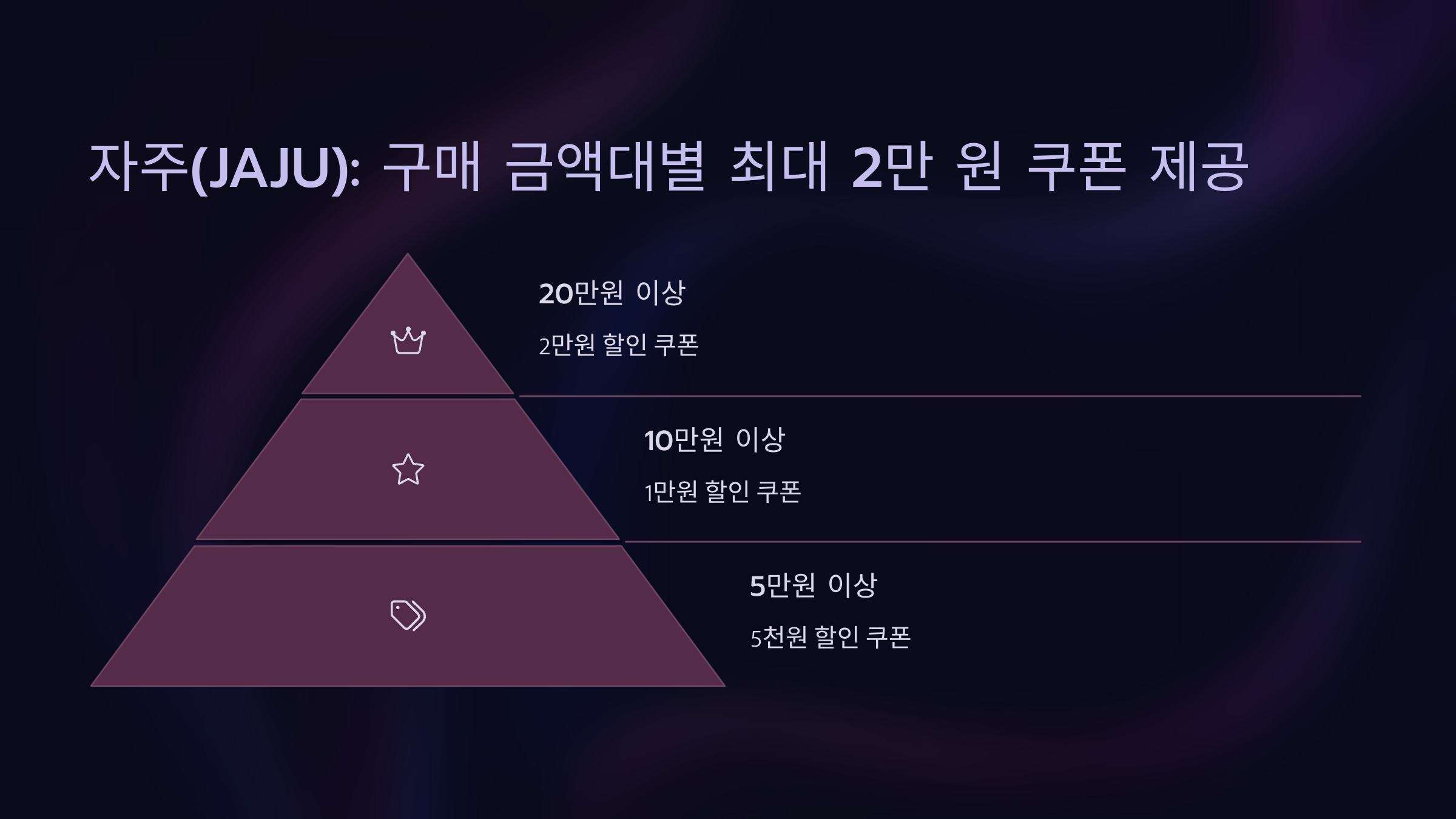 - 자주(JAJU): 구매 금액대별 최대 2만 원 쿠폰 제공