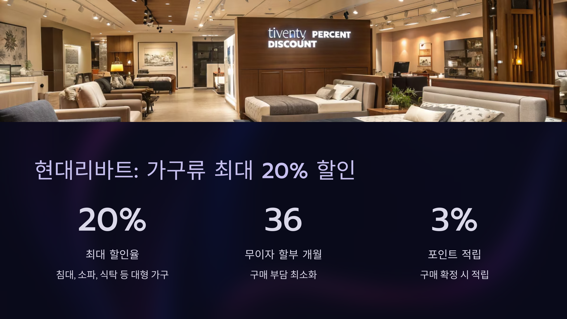 - 현대리바트: 가구류 최대 20% 할인