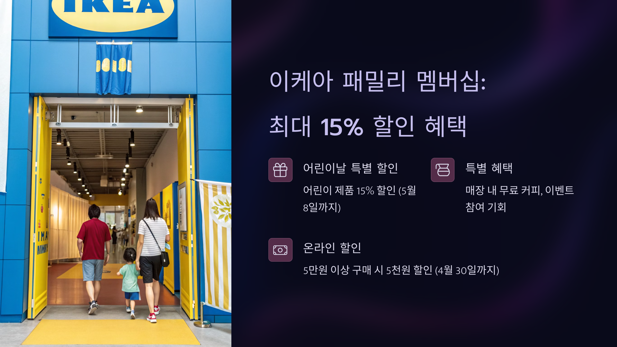 - 이케아 패밀리 멤버십: 최대 15% 할인 혜택
